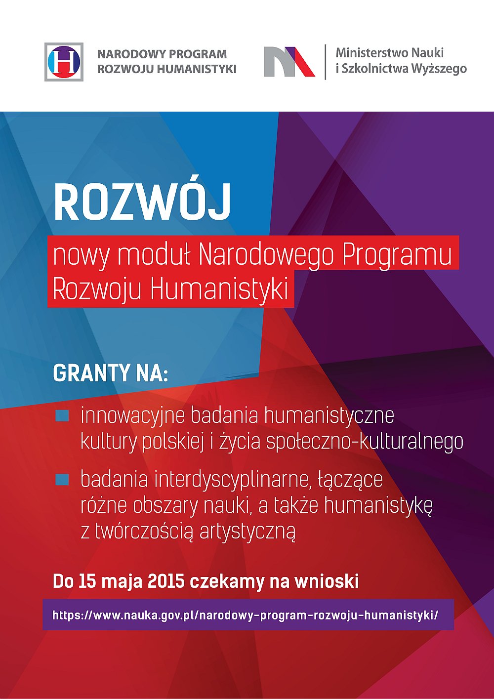 Zgłoszenia konkursowe można nadsyłać do 15 maja. Więcej informacji pod adresem: https://www.nauka.gov.pl/narodowy-program-rozwoju-humanistyki/.
