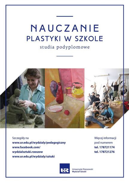 Wydział Pedagogiczny i Wydział Sztuki informują, że rekrutacja na studia podyplomowe NAUCZANIE PLASTYKI W SZKOLE została przedłużona do 15.11.2017 roku. Zapraszamy Chętnych.