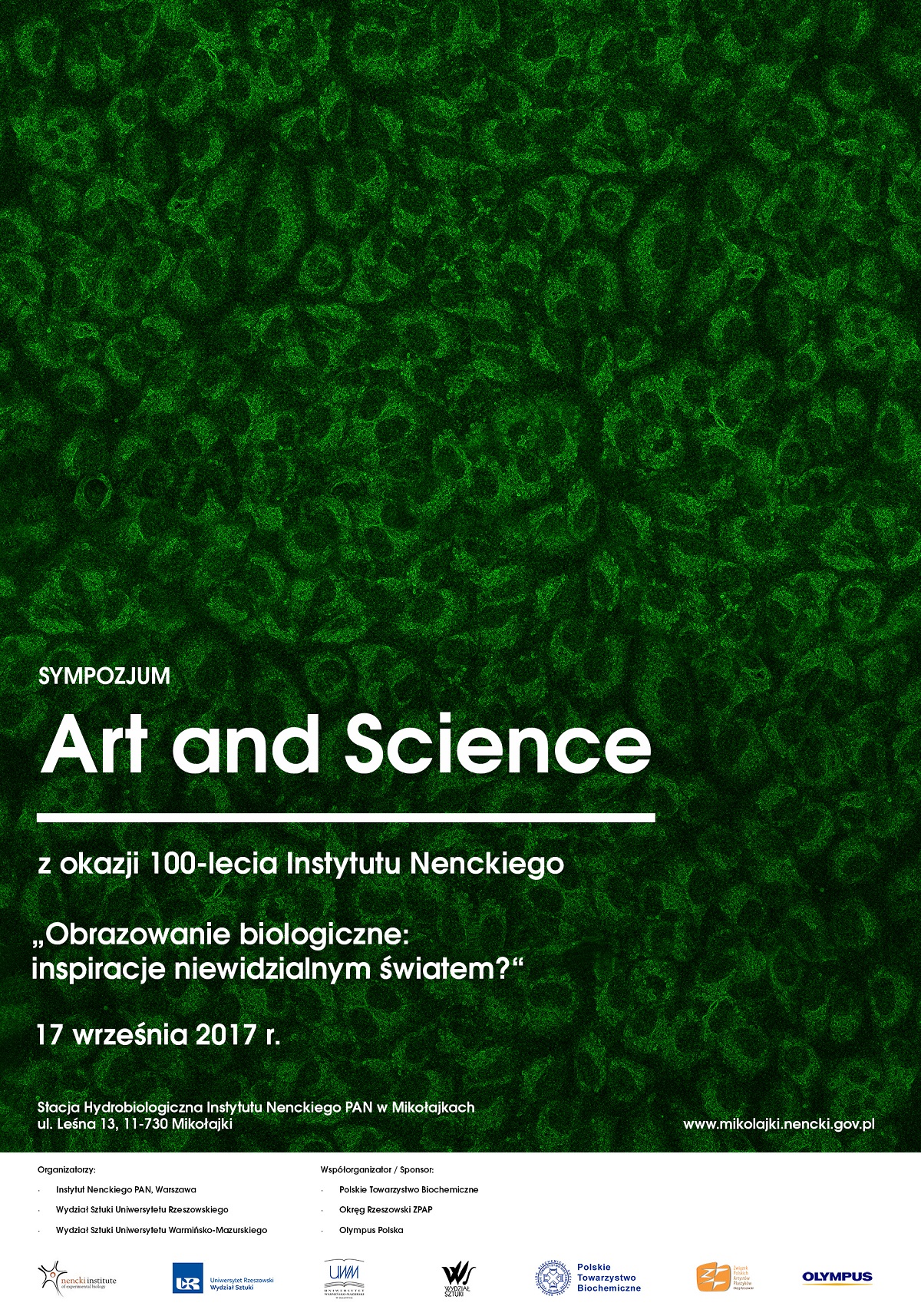 W imieniu organizatorów Sympozjum „Art and Science“ pt. „OBRAZOWANIE BIOLOGICZNE: INSPIRACJE NIEWIDZIALNYM ŚWIATEM?“ serdecznie zapraszam do Stacji Hydrobiologicznej Instytutu Nenckiego PAN w Mikołajkach. Spotkanie, z okazji 100-lecia Instytutu odbędzie się 17 września 2017 (niedziela) o godzinie 9:00. Szczegółowy Program Sympozjum w załączeniu. Serdecznie zapraszamy,
