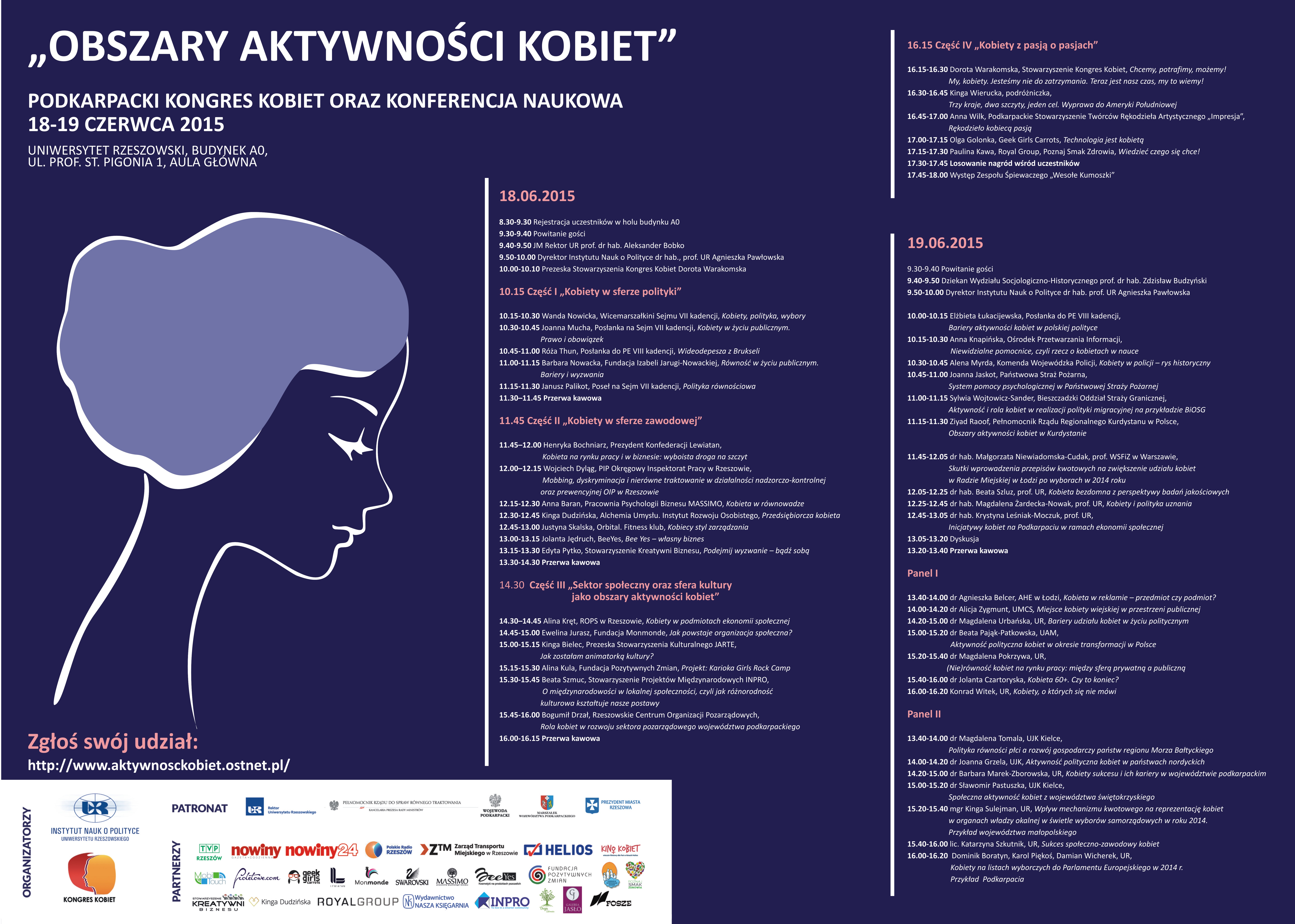 Organizatorzy: Instytut Nauk o Polityce UR, Regionalny Pełnomocnik Stowarzyszenia Kongres Kobiet w Rzeszowie