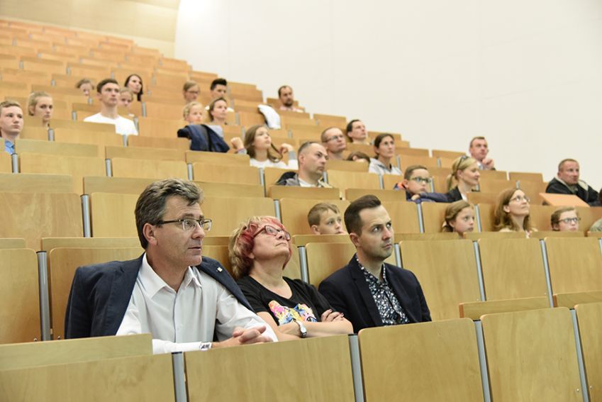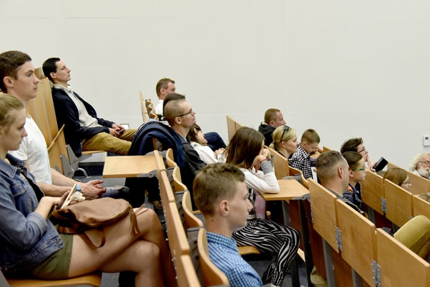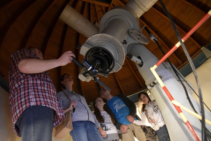 W piątkowy wieczór 25 maja na Uniwersytecie Rzeszowskim uczestnicy brali udział w wykładzie popularno-naukowym przedstawionym przez dra hab. prof. UR Piotra Gronkowkiego na temat technicznych możliwości eksploracji kosmosu oraz zwiedzili uniwersyteckie obserwatorium astronomiczne pod kierunkiem dra Marcina Wesołowskiego i mgra Zenona Sacharczuka.