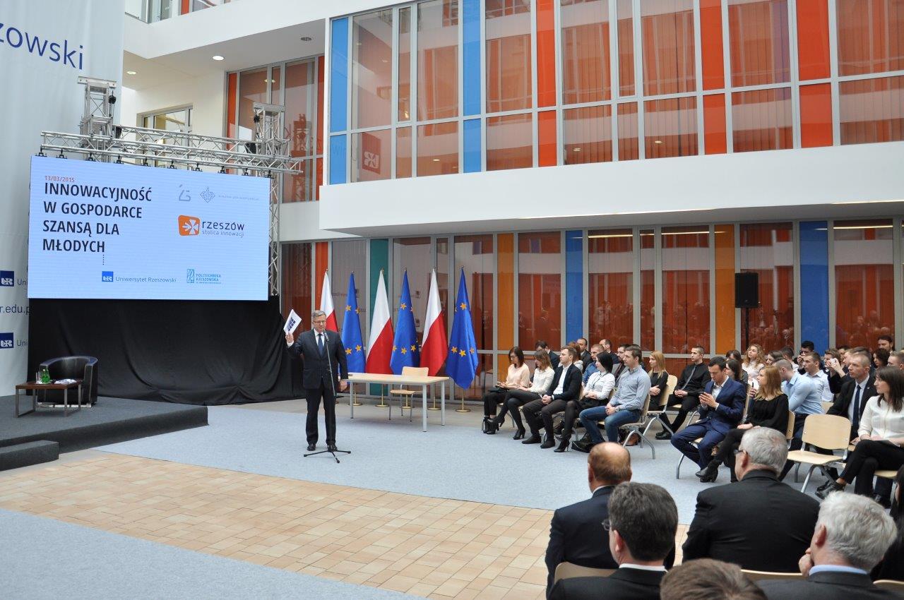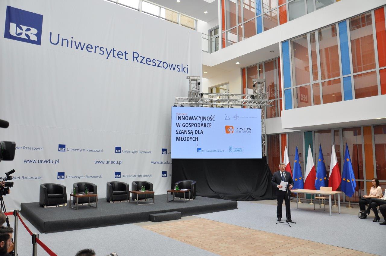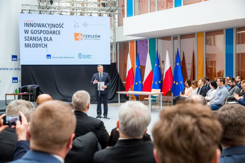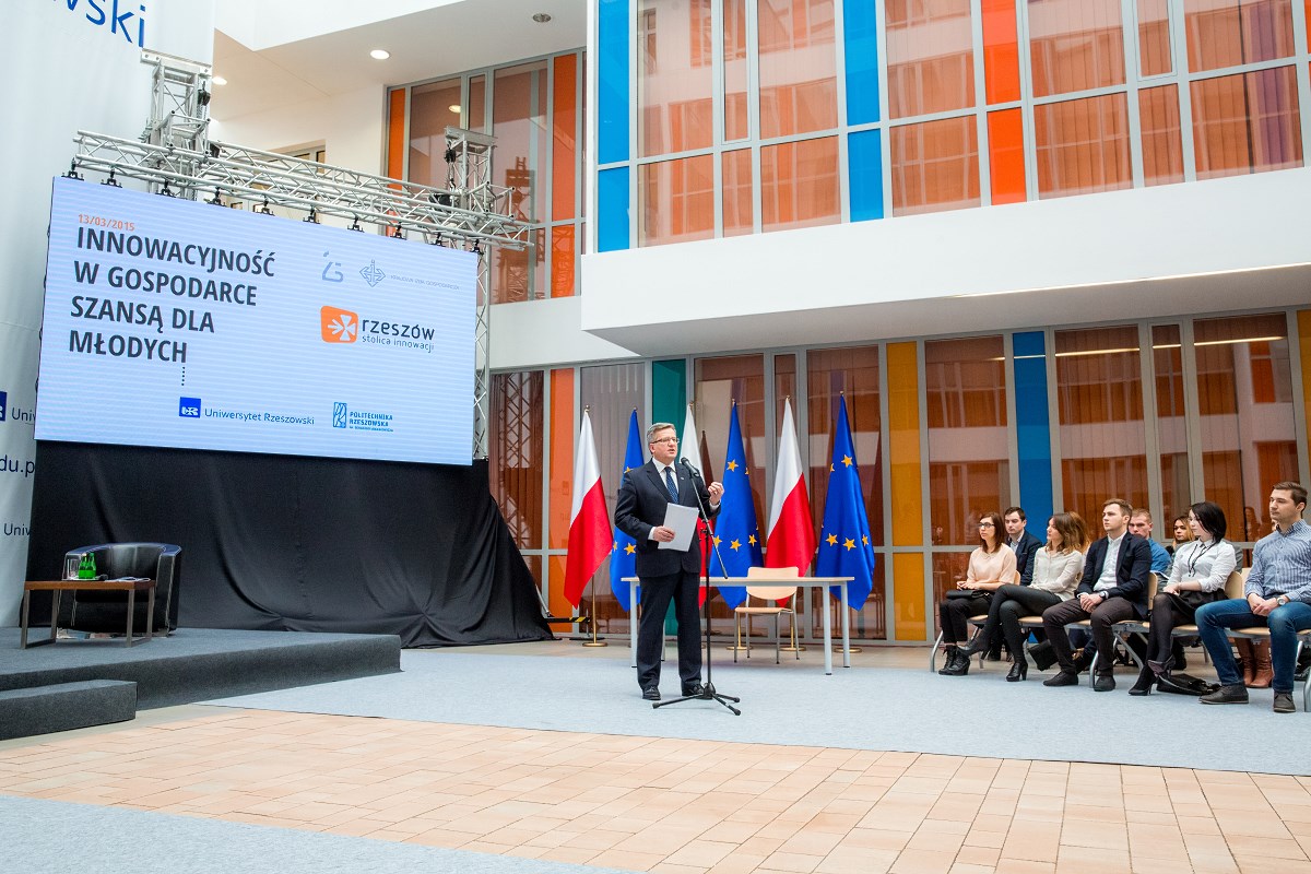 W dniu 13.03.2015 r. Prezydent Bronisław Komorowski odwiedził Uniwersytet Rzeszowski w ramach debaty „Innowacyjność w gospodarce szansą dla młodych” z udziałem nie tylko środowisk akademickich, ale także ważnych postaci świata polityki i biznesu. W jej trakcie podpisano projekt ustawy związanej z innowacyjnością. Ma ona ułatwić współpracę nauki i przedsiębiorczości. – Ustawa będzie skutecznym narzędziem w walce polskich przedsiębiorstw ze światową konkurencją – mówił prezydent.