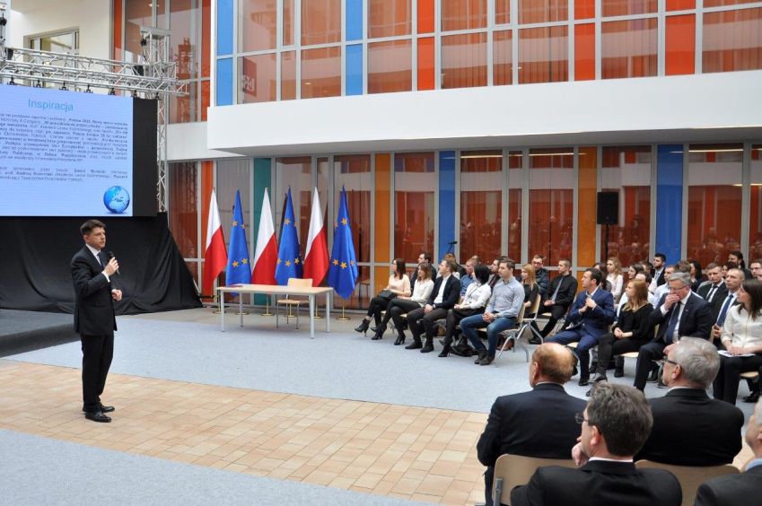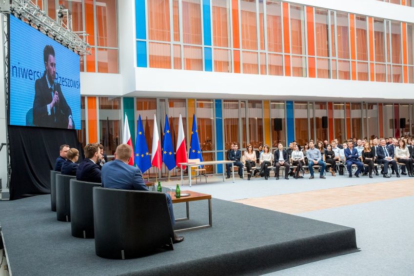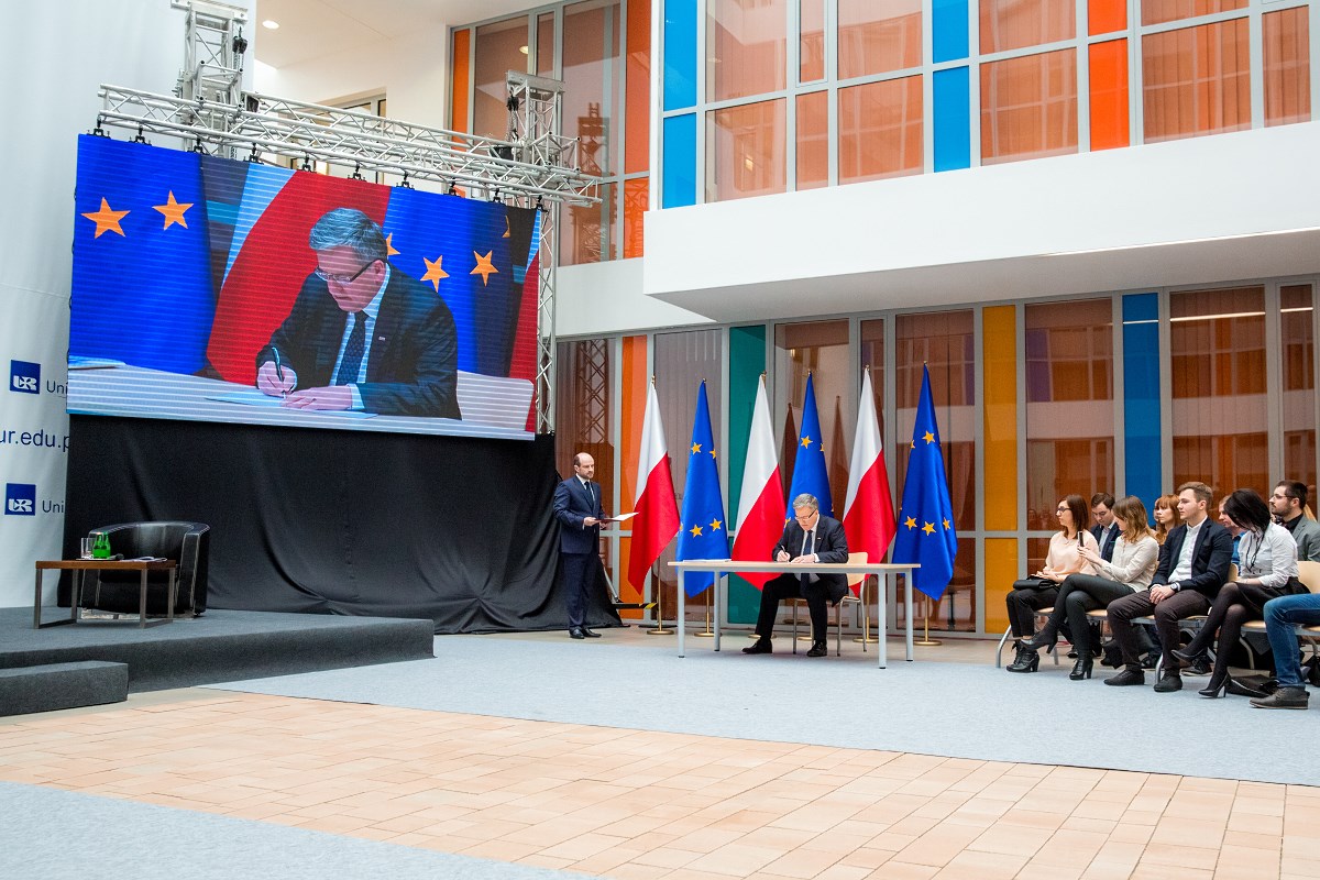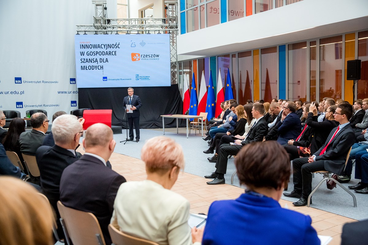 W dniu 13.03.2015 r. Prezydent Bronisław Komorowski odwiedził Uniwersytet Rzeszowski w ramach debaty „Innowacyjność w gospodarce szansą dla młodych” z udziałem nie tylko środowisk akademickich, ale także ważnych postaci świata polityki i biznesu. W jej trakcie podpisano projekt ustawy związanej z innowacyjnością. Ma ona ułatwić współpracę nauki i przedsiębiorczości. – Ustawa będzie skutecznym narzędziem w walce polskich przedsiębiorstw ze światową konkurencją – mówił prezydent.