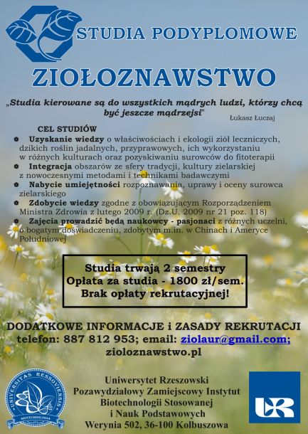 Rekrutacja na studia podyplomowe Ziołoznawstwo trwa!