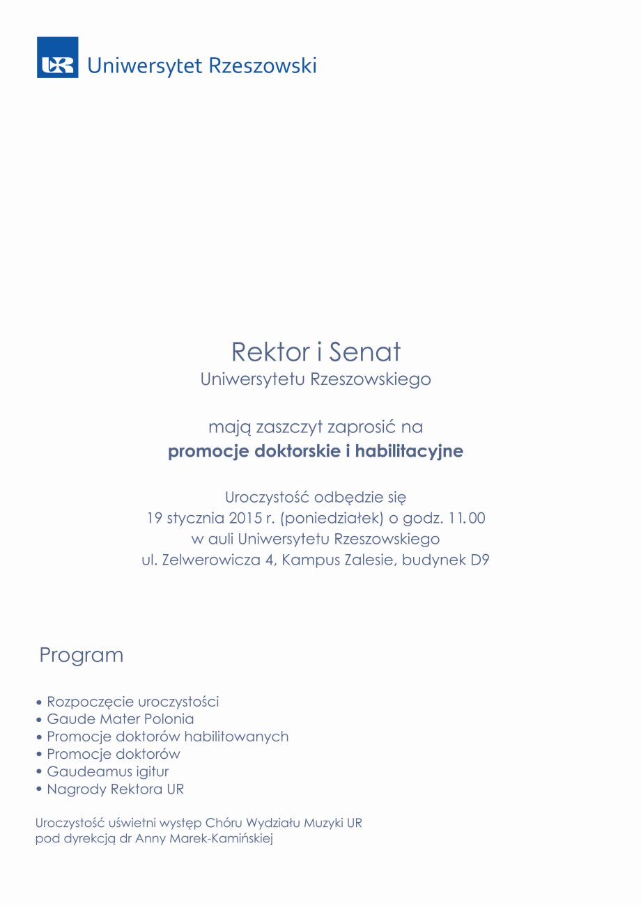 Rektor i Senat UR mają zaszczyt zaprosić na promocje doktorskie i habilitacyjne.