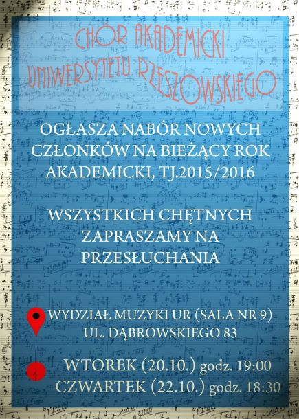 Już w najbliższy wtorek rusza nabór do Chóru Akademickiego UR. Jeśli jesteś pasjonatem muzyki, śpiewasz, chcesz się rozwijać i spełniać artystycznie, nie zmarnuj okazji!