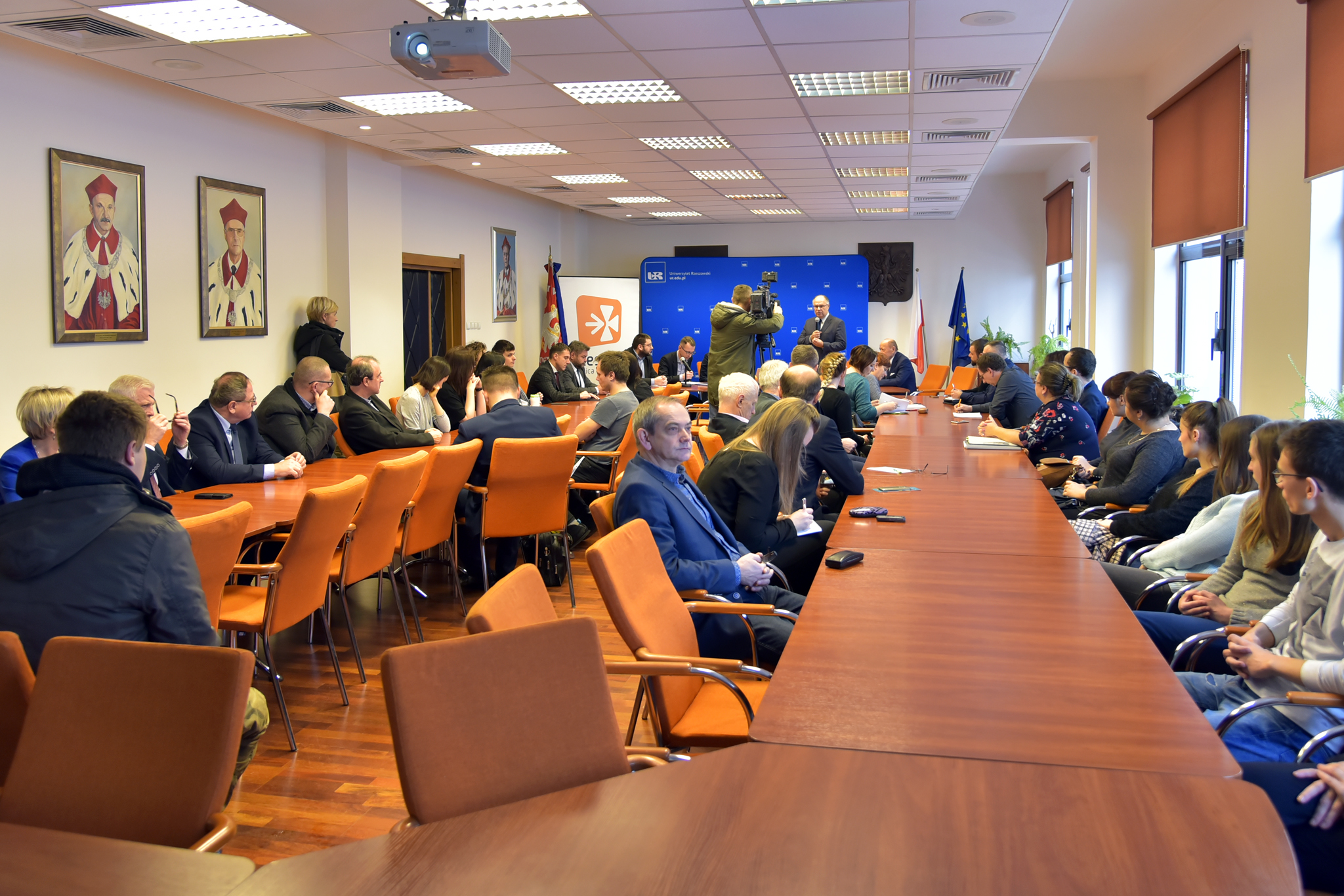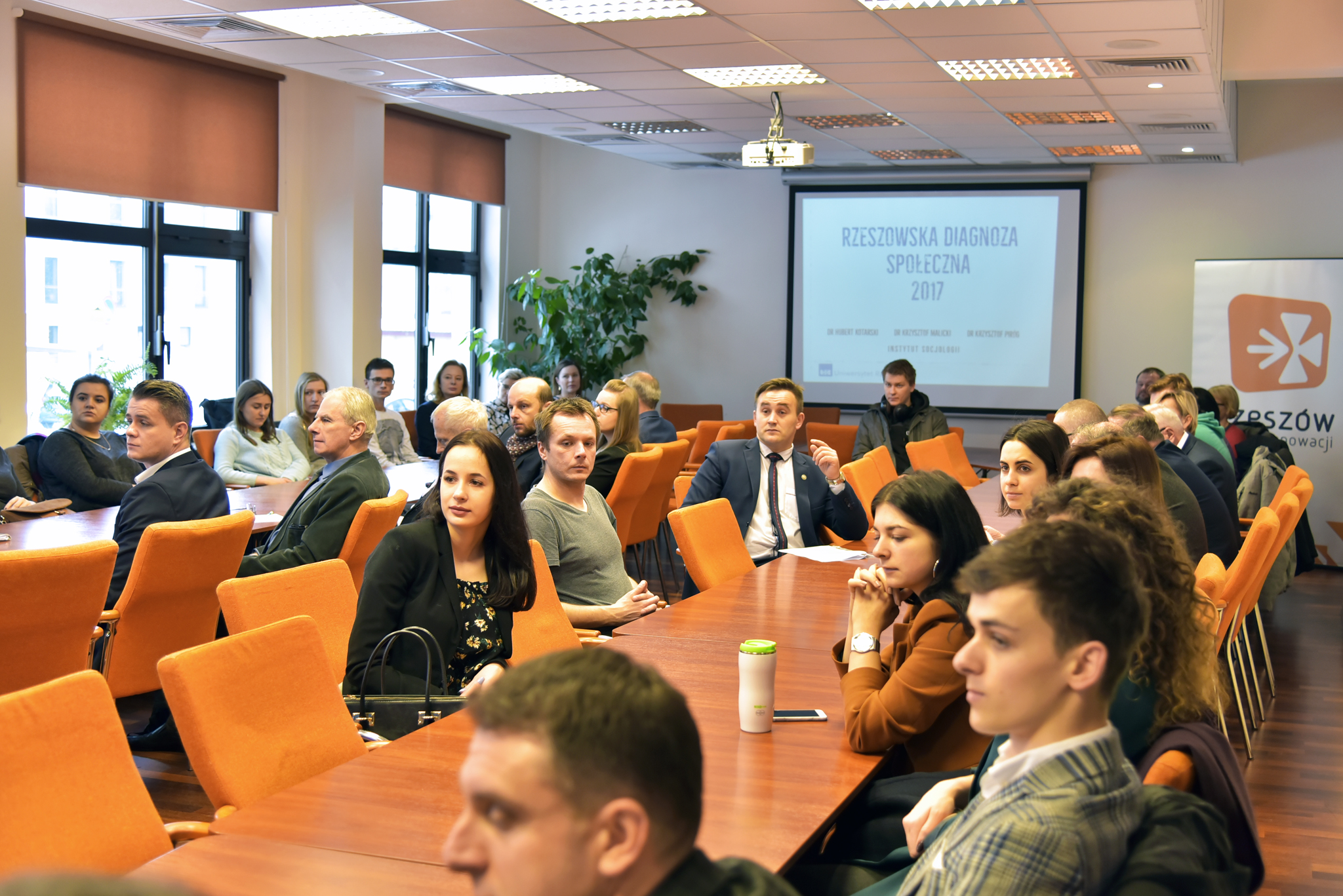 Dziś na Uniwersytecie Rzeszowskim odbyła się prezentacja wyników najnowszej Rzeszowskiej Diagnozy Społecznej 2017, przygotowanej przez pracowników i studentów Instytutu Socjologii UR. Dr Hubert Kotarski, dr Krzysztof Piróg i dr Krzysztof Malicki, autorzy badania, mówili o najważniejszych wynikach badania, w tym między innymi o opiniach Rzeszowian dotyczących czynników wpływających na jakość życia w mieście, najbardziej potrzebnych miejskich inwestycjach, więzi mieszkańców z miastem, czystości powietrza, bezpieczeństwa, kwestii Pomnika Walk Rewolucyjnych oraz zaufaniu do lokalnych polityków. W prezentacji wyników badania uczestniczył JM Rektor UR prof. dr. hab. Sylwester Czopek oraz Prezydent Miasta Rzeszowa Tadeusz Ferenc.