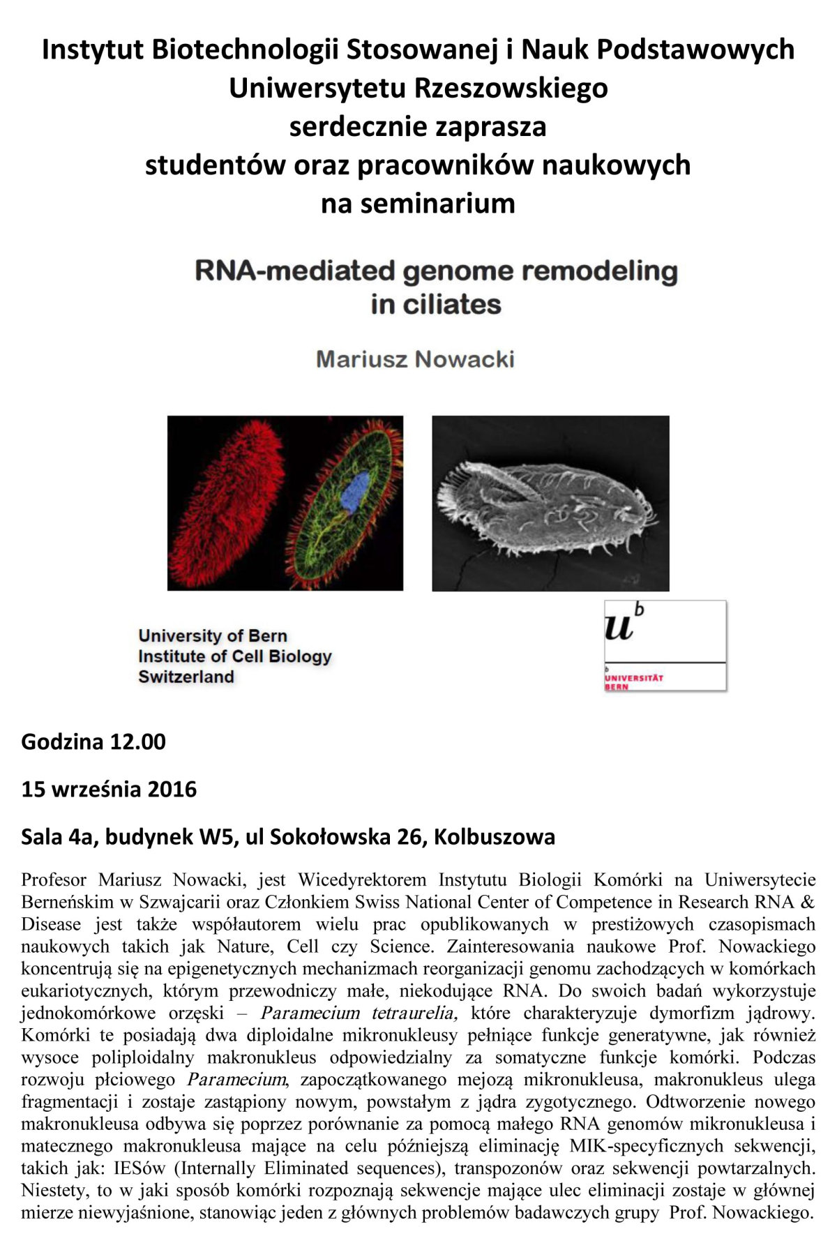 Seminarium Prof. Mariusza Nowackiego w Instytucie Biotechnologii Stosowanej i Nauk Podstawowych UR