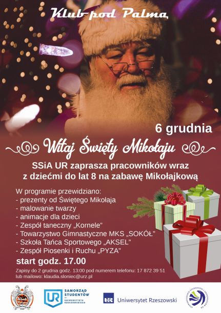 Serdecznie zapraszamy pracowników wraz z dziećmi do lat 8 na spotkanie ze Świętym Mikołajem.