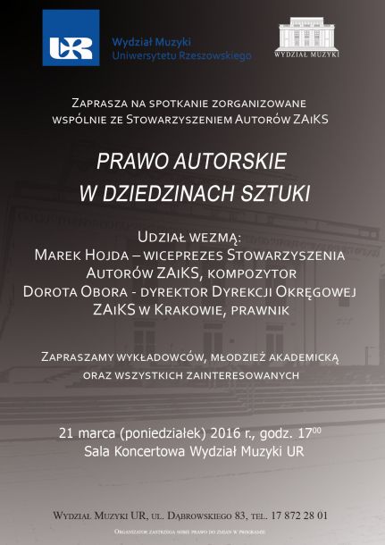 Spotkanie zorganizowane wspólnie ze stowarzyszenie autorów ZAiKS "Prawo autorskie w dziedzinach sztuki"