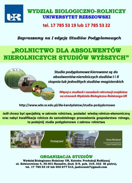 Studia podyplomowe "Rolnictwo dla absolwentów nierolniczych studiów wyższych"