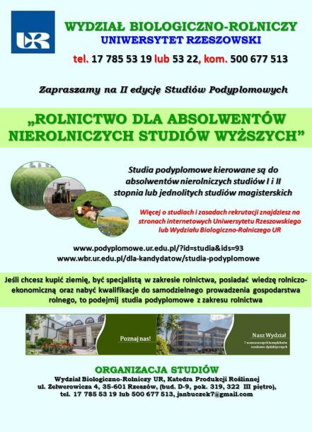 Studia podyplomowe - "Rolnictwo dla absolwentów nierolniczych studiów wyższych"