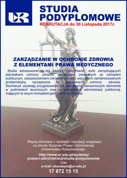 Wszystkich zainteresowanych zapraszamy do bliższego zapoznania się z ofertą studiów podyplomowych Wydziału Prawa i Administracji Uniwersytetu Rzeszowskiego z zakresu