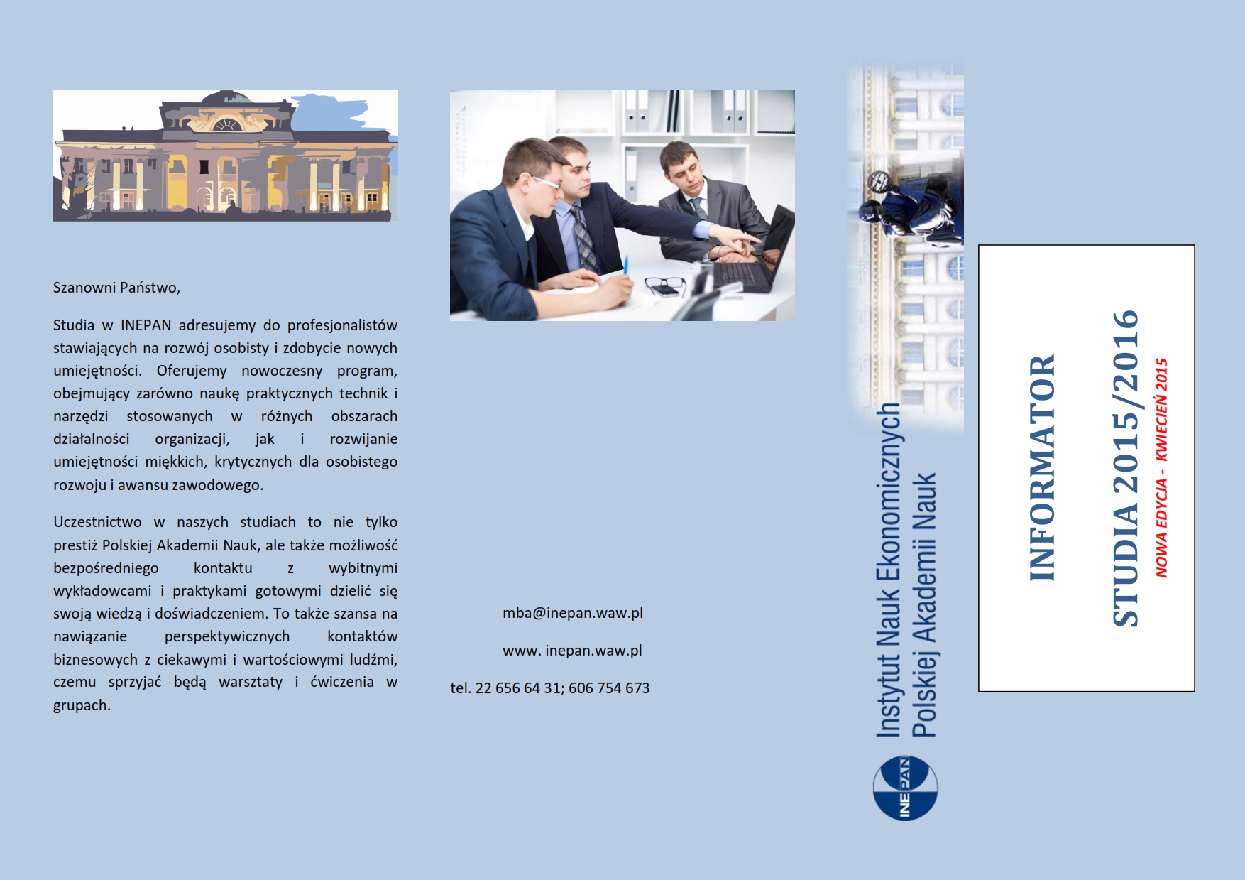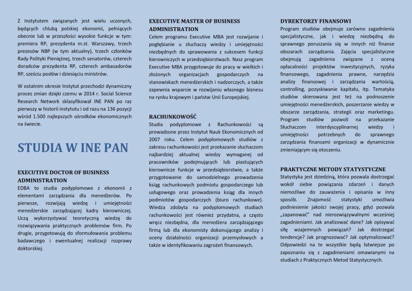 Zapraszamy na studia w Instytucie Nauk Ekonomicznych Polskiej Akademii Nauk
