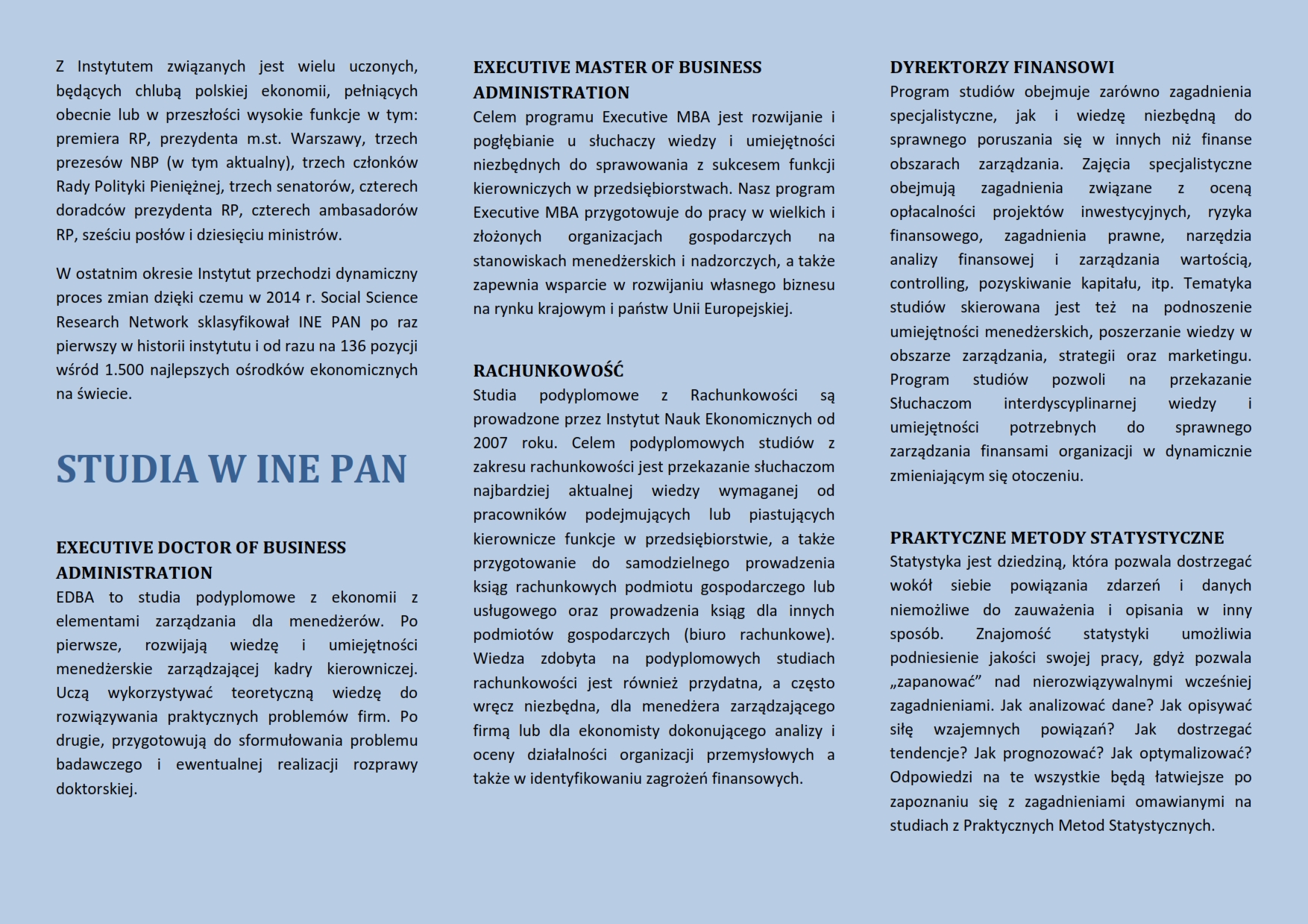 Studia w Instytucie Nauk Ekonomicznych Polskiej Akademii Nauk