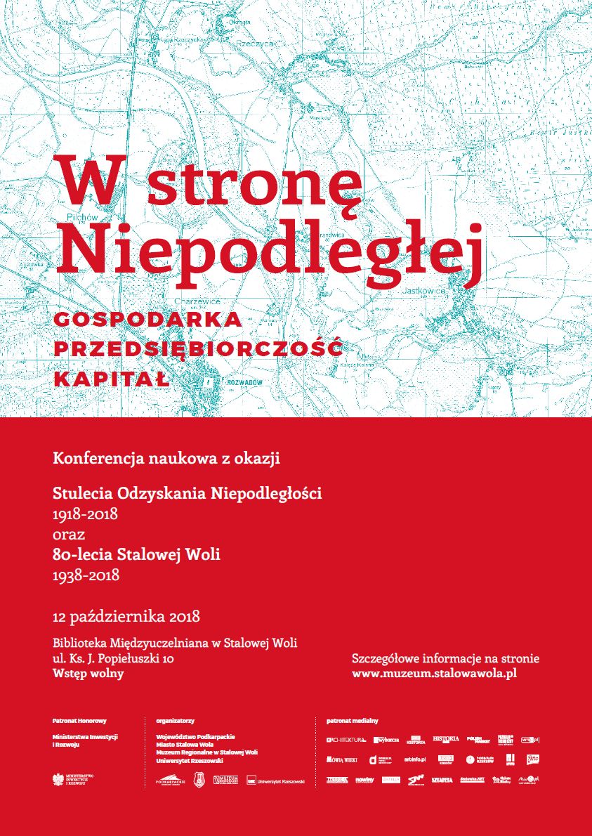 Konferencja naukowa W stronę Niepodległej – gospodarka, przedsiębiorczość, kapitał, przygotowana z okazji Stulecia Odzyskania Niepodległości oraz 80-lecia Stalowej Woli, przybliży zagadnienia gospodarcze oraz ważne inwestycje niepodległej Polski, m.in. powstanie Stalowej Woli, sztandarowej inwestycji Centralnego Okręgu Przemysłowego. W konferencji wezmą udział nie tylko naukowcy, lecz również uczestnicy życia publicznego – przedstawiciele biznesu, samorządów, organizacji pozarządowych. Konferencja odbędzie się 12 października 2018 r. Bibliotece Międzyuczelnianej w Stalowej Woli. Patronat honorowy nad wydarzeniem objęło Ministerstwo Inwestycji i Rozwoju.