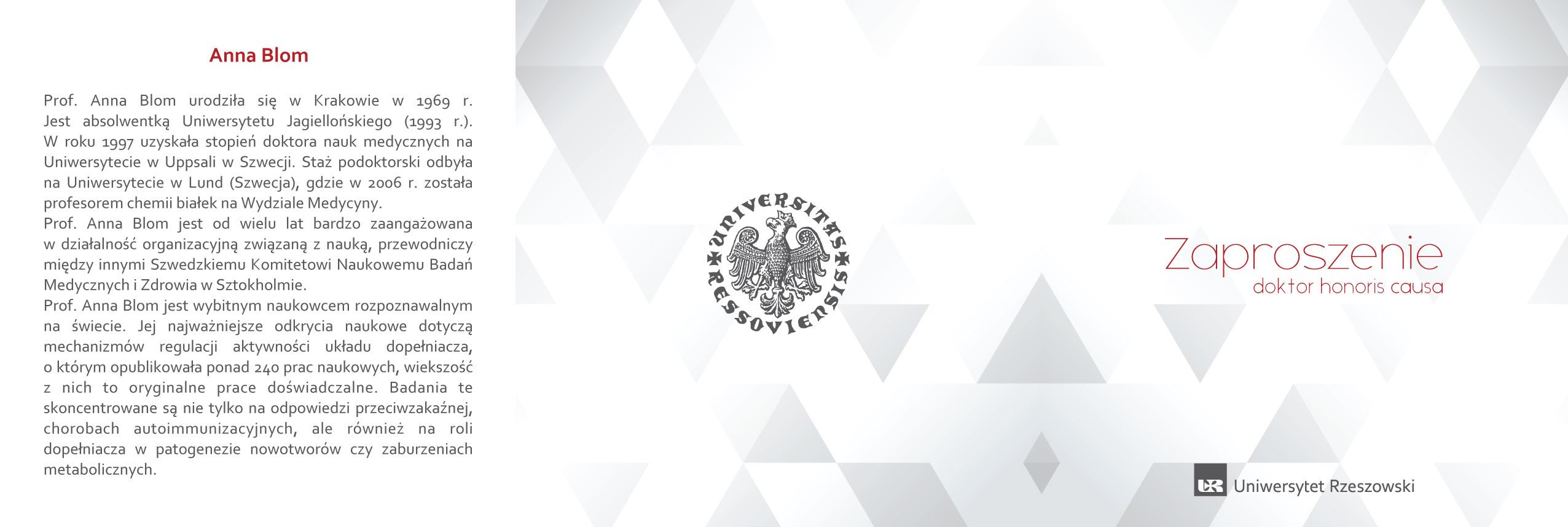 - Prezentacja sylwetki prof. Anny Blom – dr hab. Paweł Grata, prof. UR