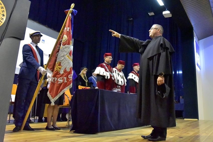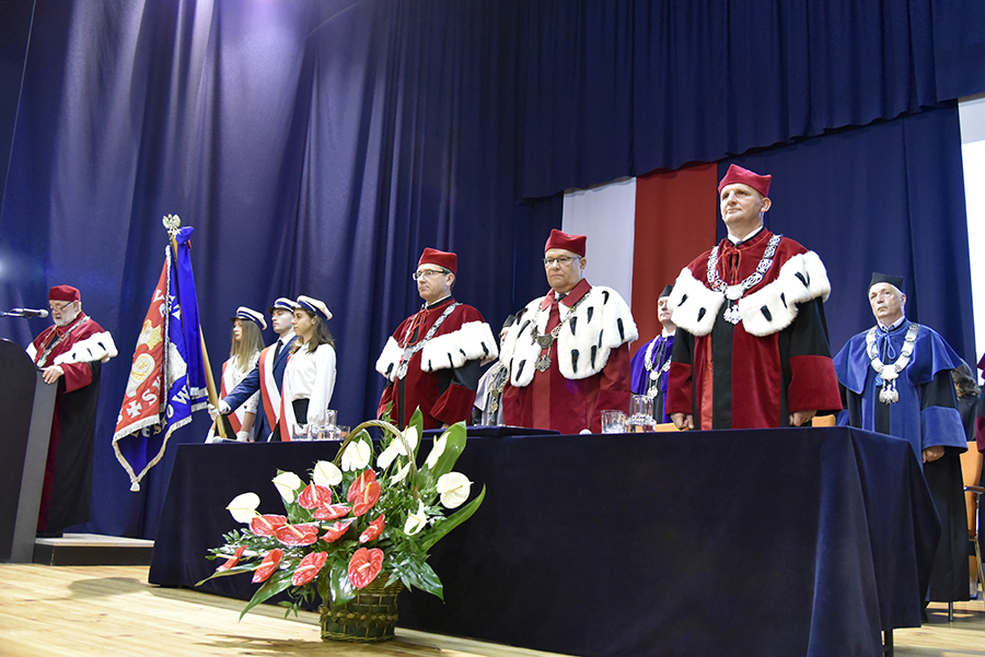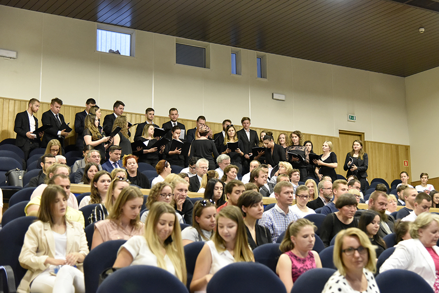 Po wykonaniu przez Chór Wydziału Muzyki UR pod dyrekcją dr Bożeny Stasiowskiej-Chrobak utworu Gaude Mater Polonia zgromadzonych na sali przywitał Jego Magnificencja prof. dr hab. Sylwester Czopek, Rektor Uniwersytetu Rzeszowskiego.