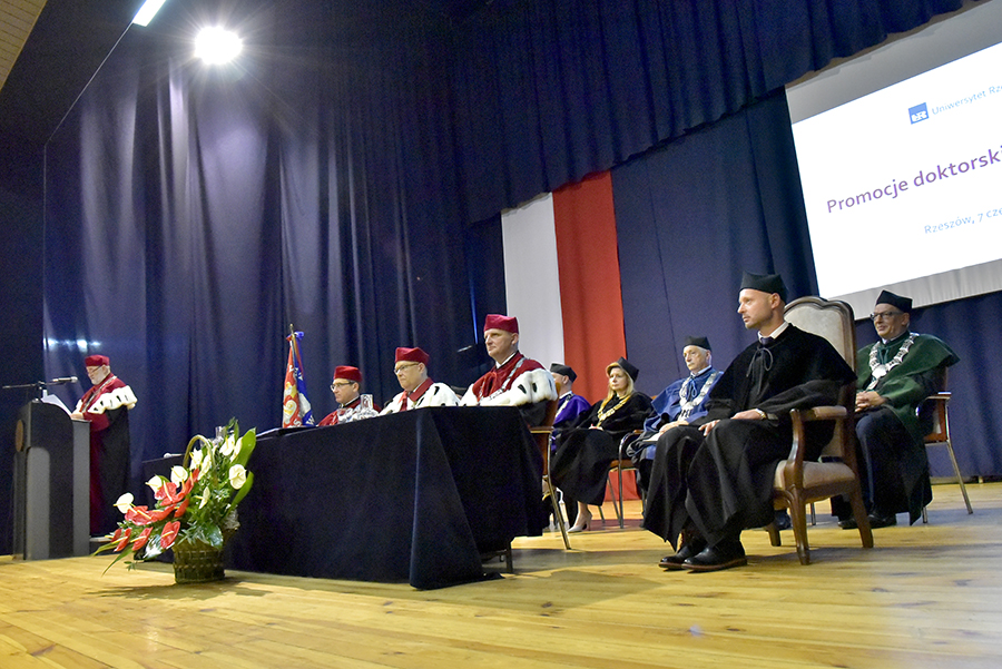 Pierwsza część uroczystości rozpoczęła się o godz. 10:00 w Dużej Auli UR. Poświęcona była promocjom doktorów i doktorów habilitowanych, którzy uzyskali stopnie naukowe w minionym półroczu. Tę część uroczystości prowadził prof. dr hab. Marek Koziorowski, Prorektor ds. Nauki i Współpracy z Zagranicą.