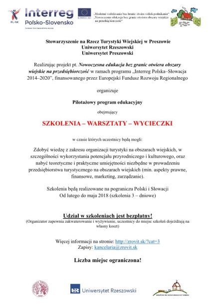 Wydział Wychowania Fizycznego jako partner projektu Nowoczesna edukacja bez granic otwiera obszary wiejskie na przedsiębiorczość zaprasza na bezpłatne szkolenia dotyczące turystyki wiejskiej na obszarach pogranicza Polski i Słowacji