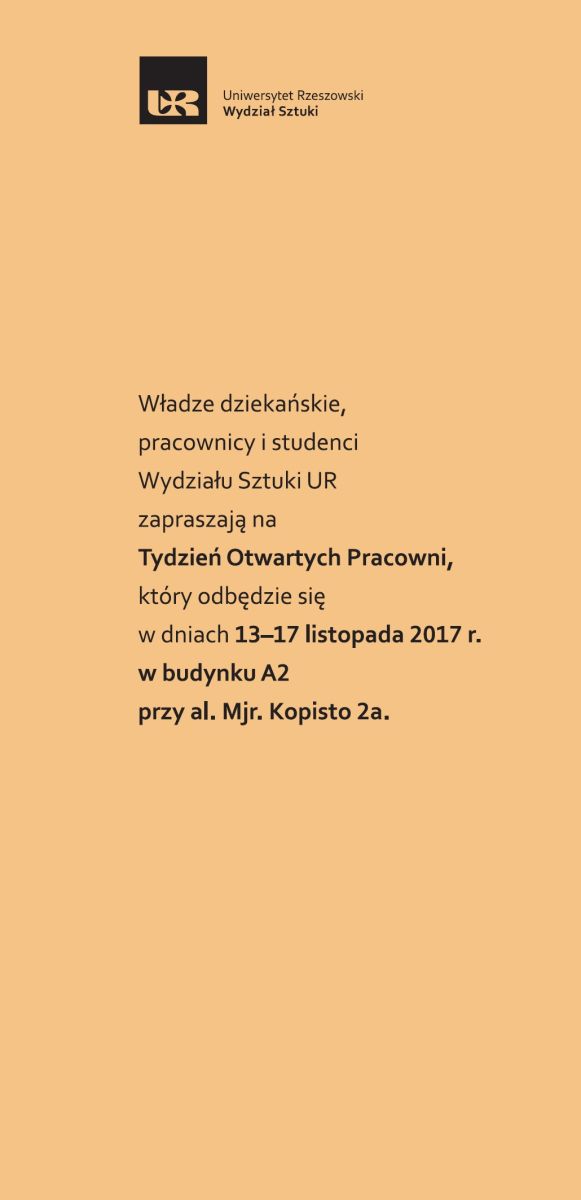 Od 13.11. br. /pon./ do 17.11 /piątek/ br., Wydział Sztuki UR zaprasza wszystkich zainteresowanych specyfiką studiowania kierunków artystycznych na naszym wydziale.