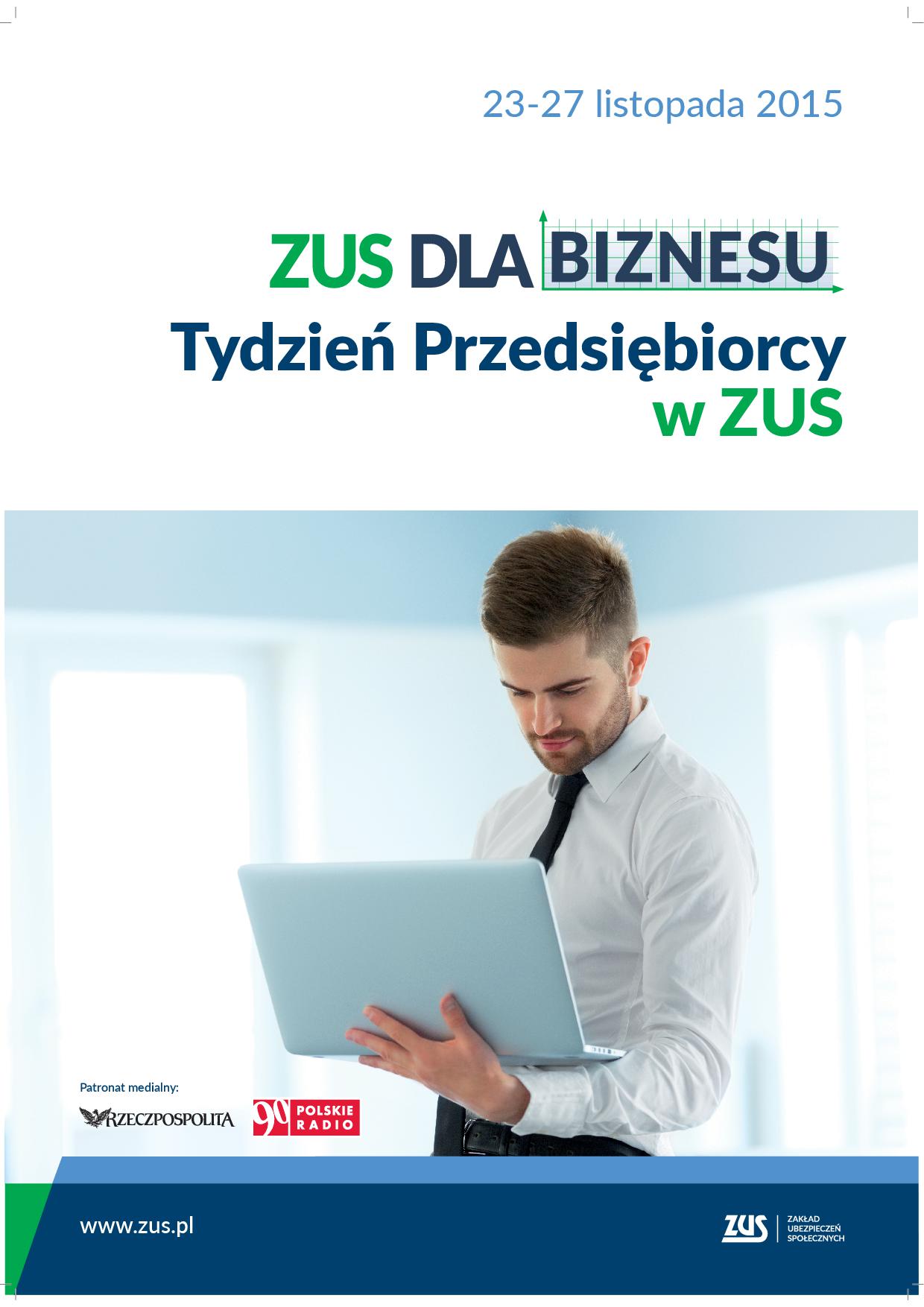 W dniach od 23 do 27 listopada br. Zakład Ubezpieczeń Społecznych organizuje „Tydzień Przedsiębiorcy,” podczas którego zorganizowane zostaną bezpłatne, specjalistyczne szkolenia i konsultacje.