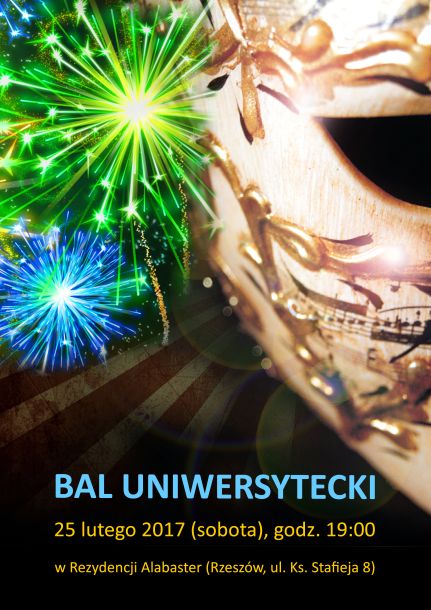 JM Rektor Uniwersytetu Rzeszowskiego zaprasza społeczność akademicką na UNIWERSYTECKI BAL KARNAWAŁOWY,