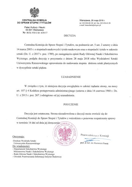 Uprawnienia doktorskie dla Wydziału Sztuki UR