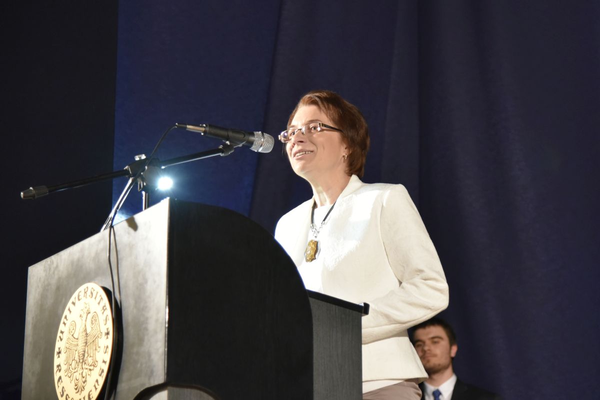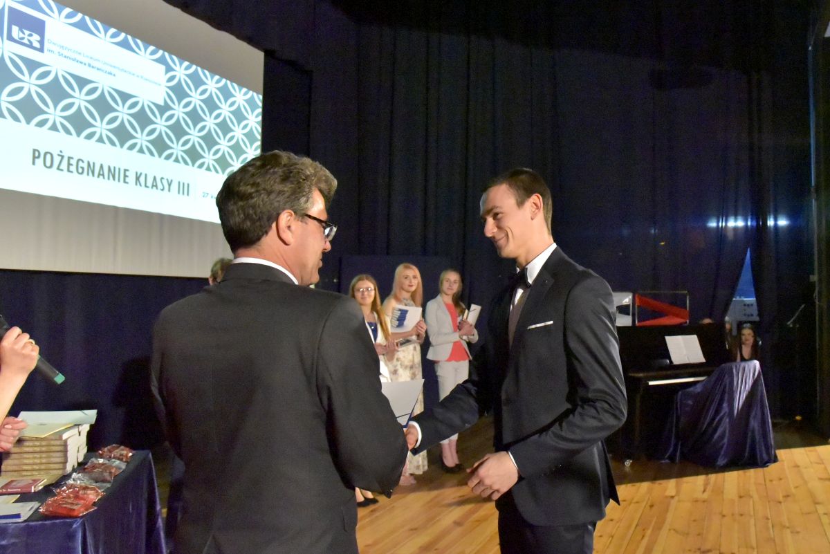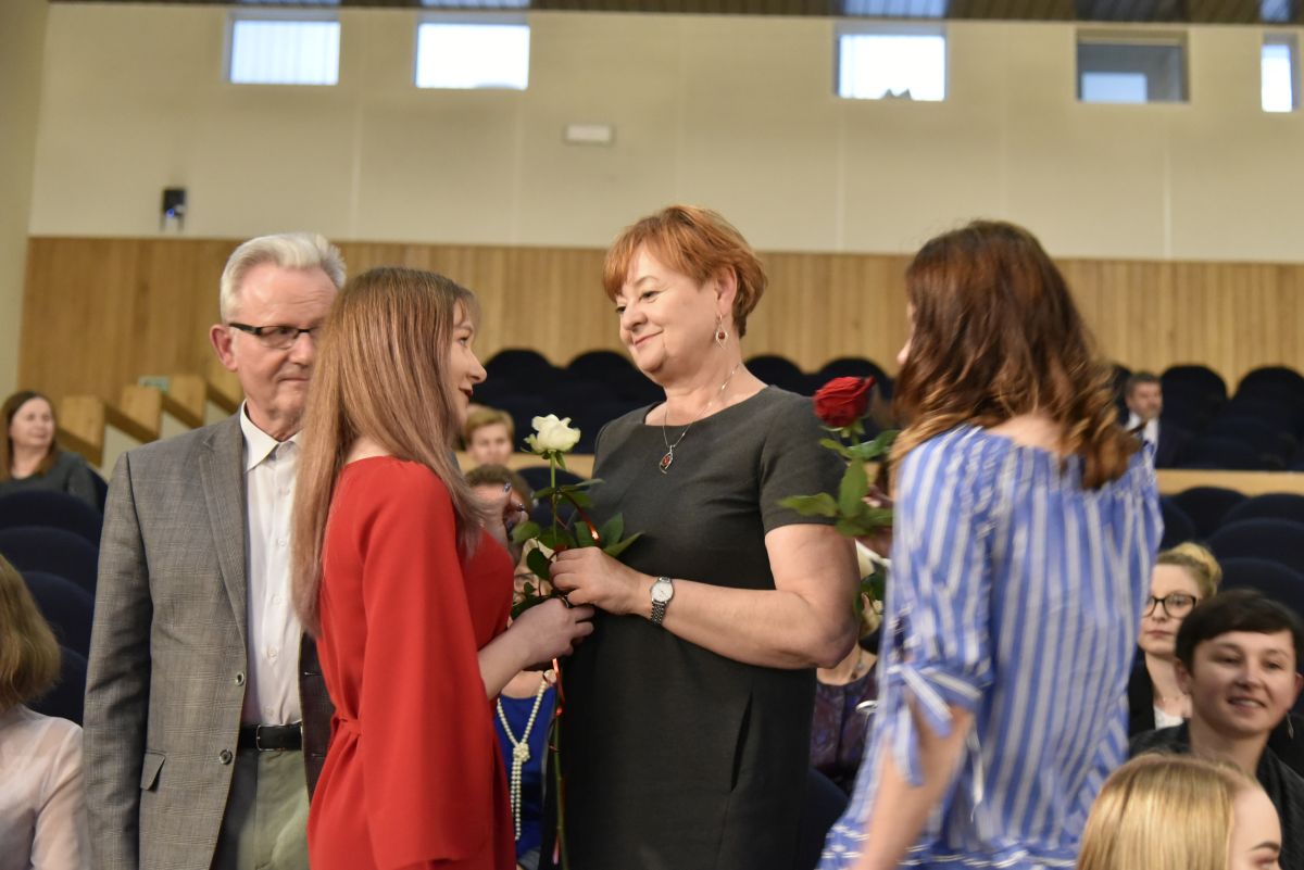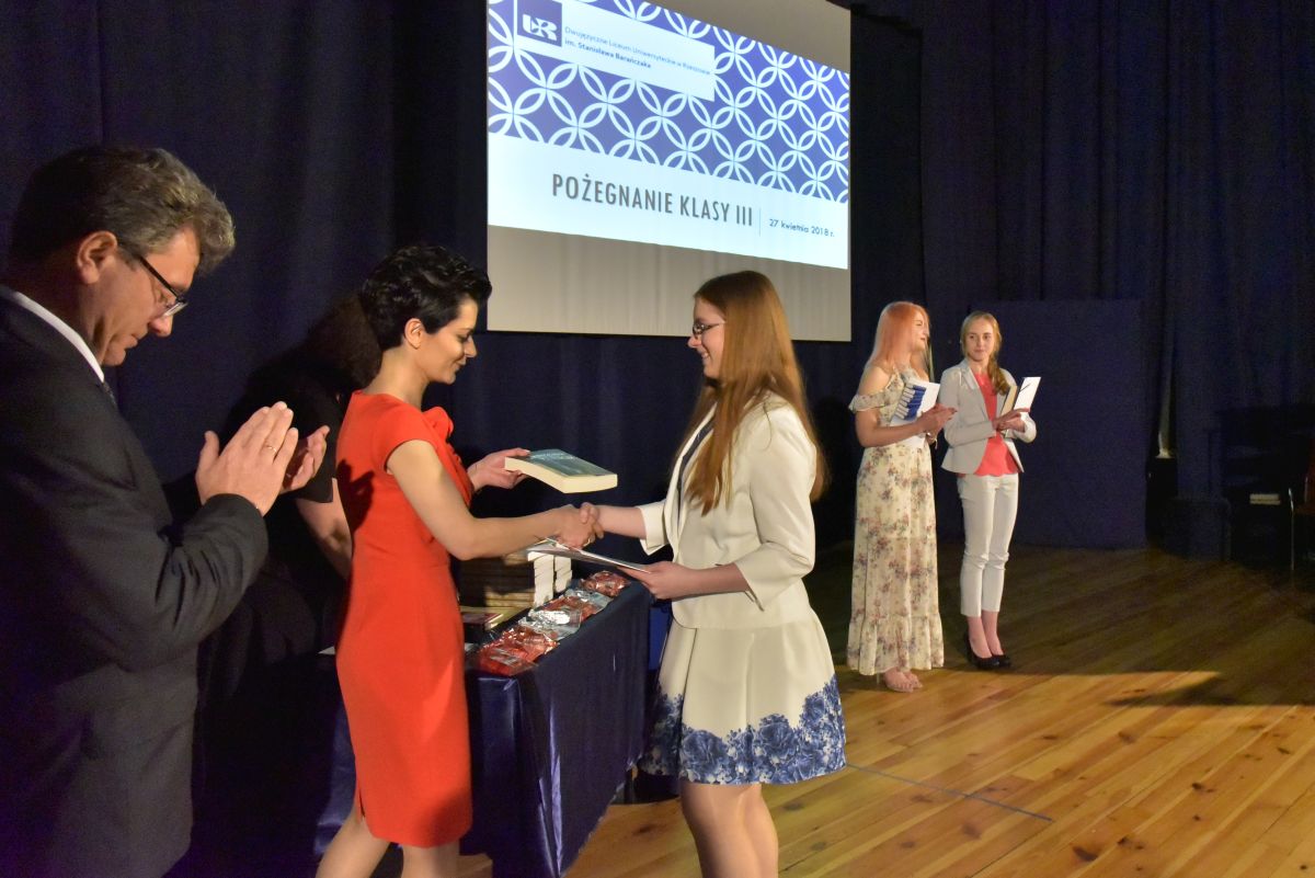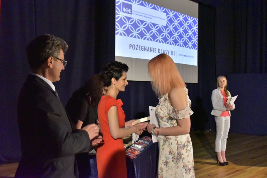 27 kwietnia odbyło się uroczyste zakończenie roku szkolnego dla abiturientów Dwujęzycznego Liceum Uniwersyteckiego, połączone z upamiętnieniem Konstytucji 3 Maja. Poza trzecioklasistami i ich rodzicami w tym wydarzeniu uczestniczyli również: Prorektor ds. Studenckich i Kształcenia dr hab. Wojciech Walat, prof. UR Dyrektor DLU dr Anna Pięta-Szawara, nauczyciele, pracownicy oraz uczniowie liceum. Maturzystom wszyscy życzyli wysokich wyników podczas egzaminów, podejmowania mądrych decyzji, radości z sukcesów oraz umiejętności wyciągania wniosków z porażek. Na ręce Dyrektor DLU życzenia dla abiturientów złożył także JM Rektor Uniwersytetu Rzeszowskiego prof. dr hab. Sylwester Czopek.