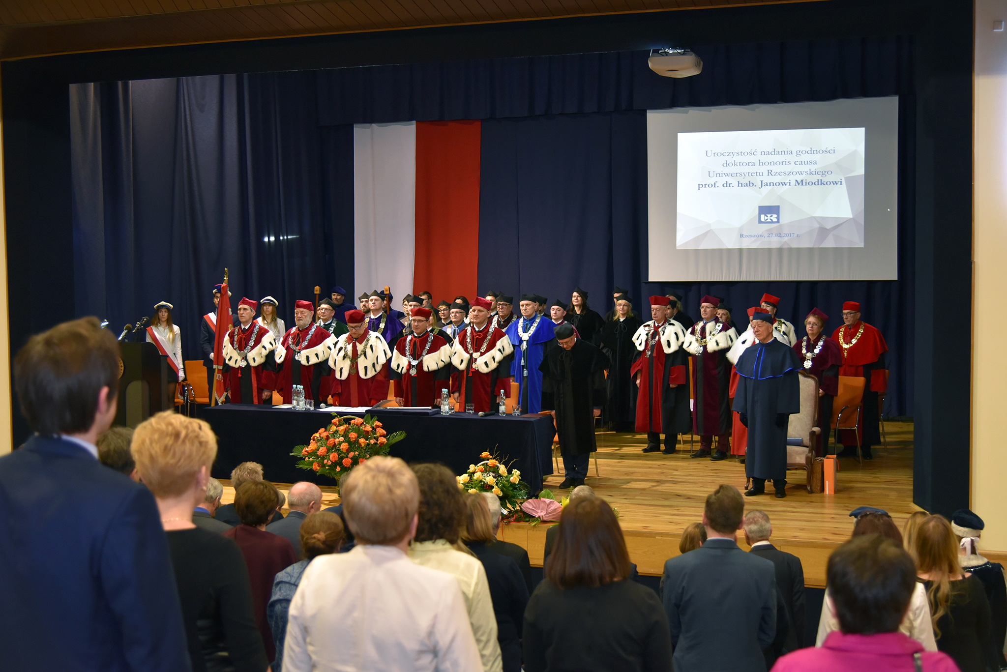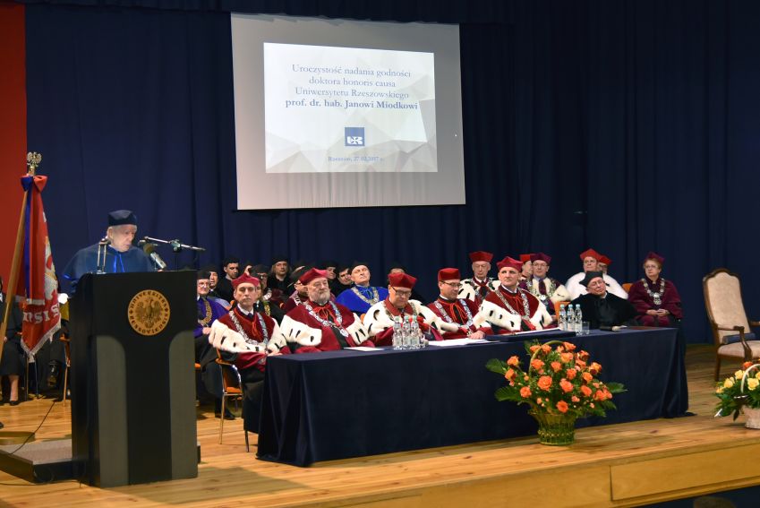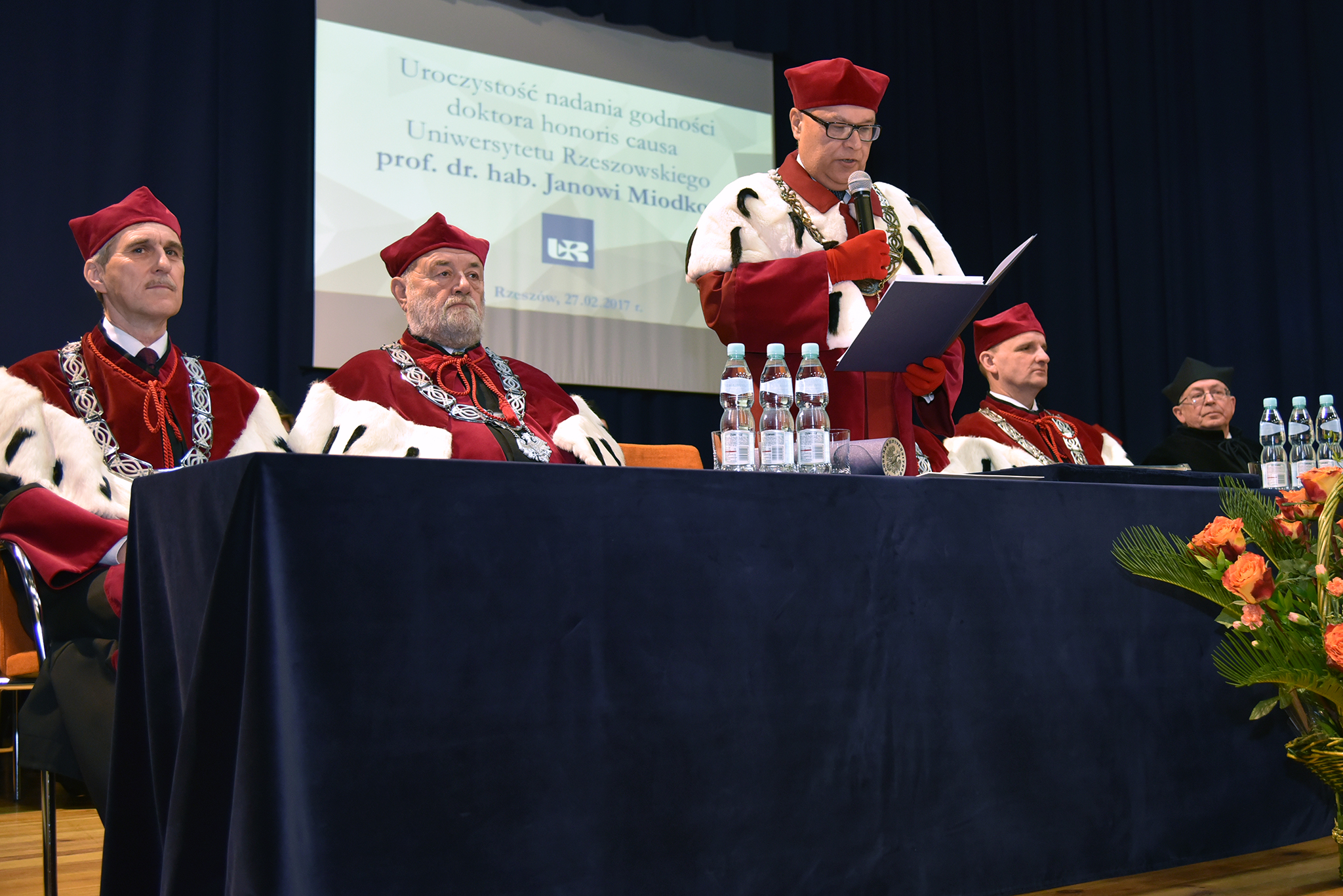 27 lutego 2017 r. w Uniwersytecie Rzeszowskim odbyło się wielkie akademickie święto. Profesor Jan Miodek otrzymał najwyższą godność akademicką - Doktorat Honoris Causa.