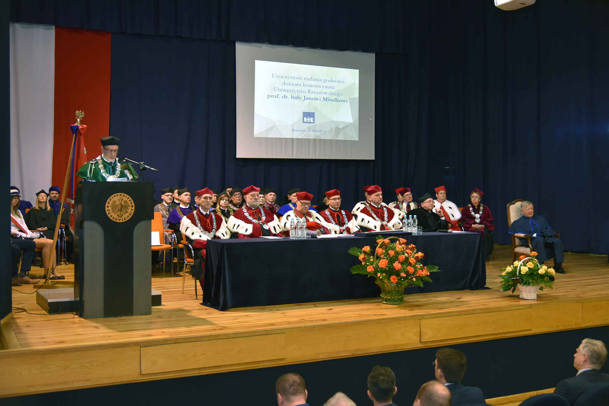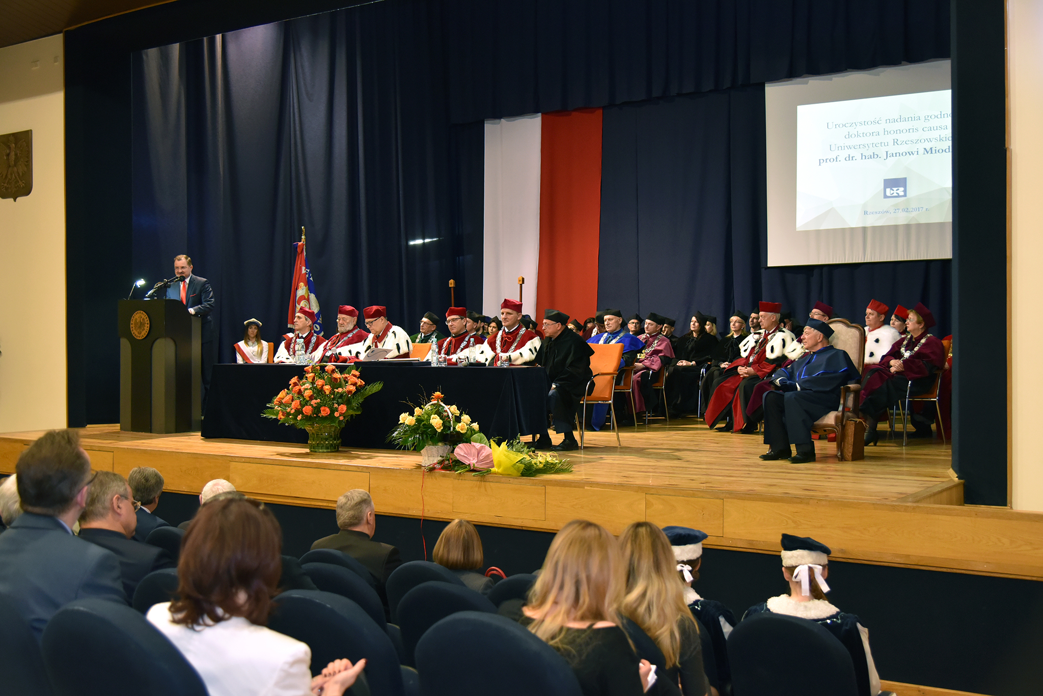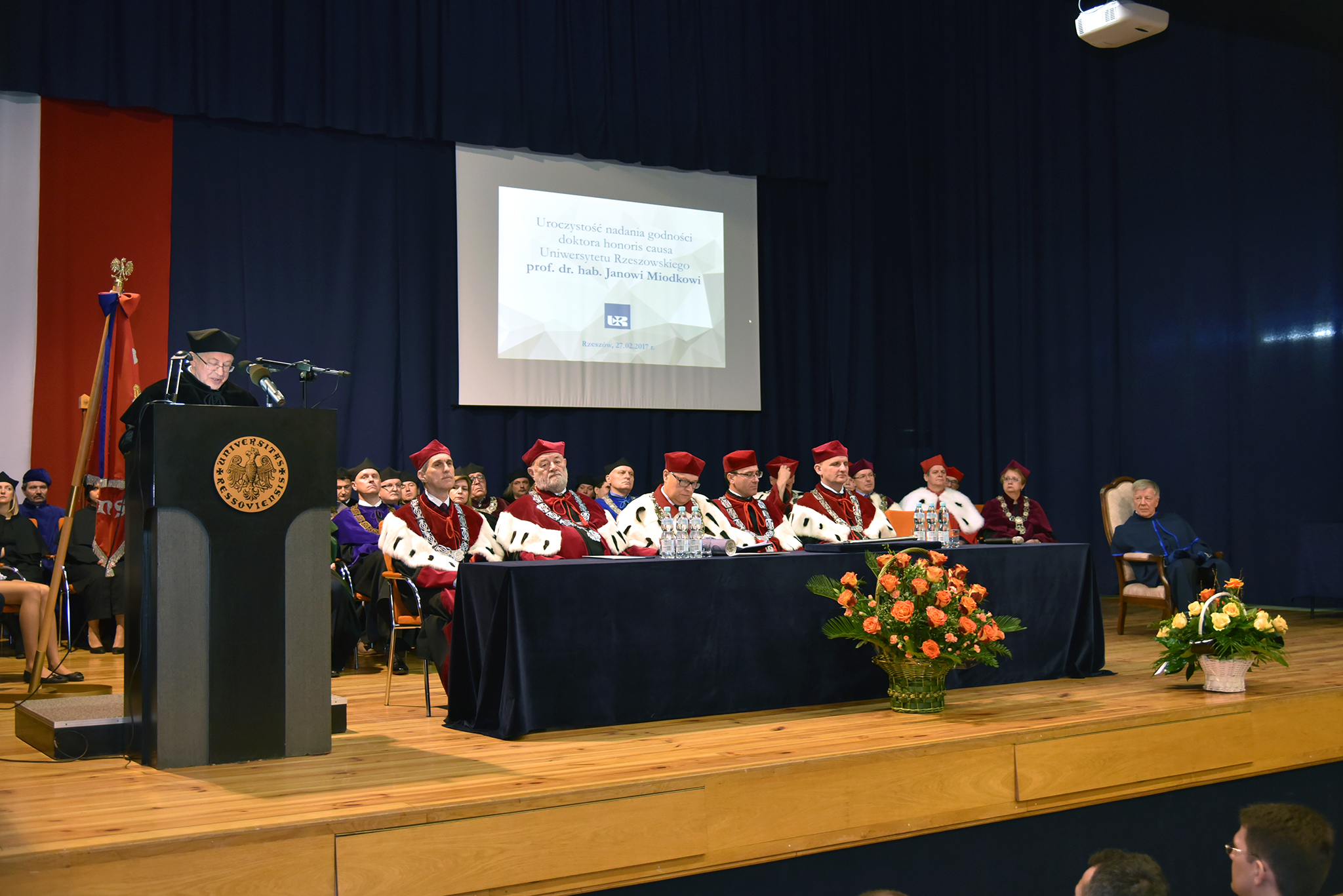 27 lutego 2017 r. w Uniwersytecie Rzeszowskim odbyło się wielkie akademickie święto. Profesor Jan Miodek otrzymał najwyższą godność akademicką - Doktorat Honoris Causa.