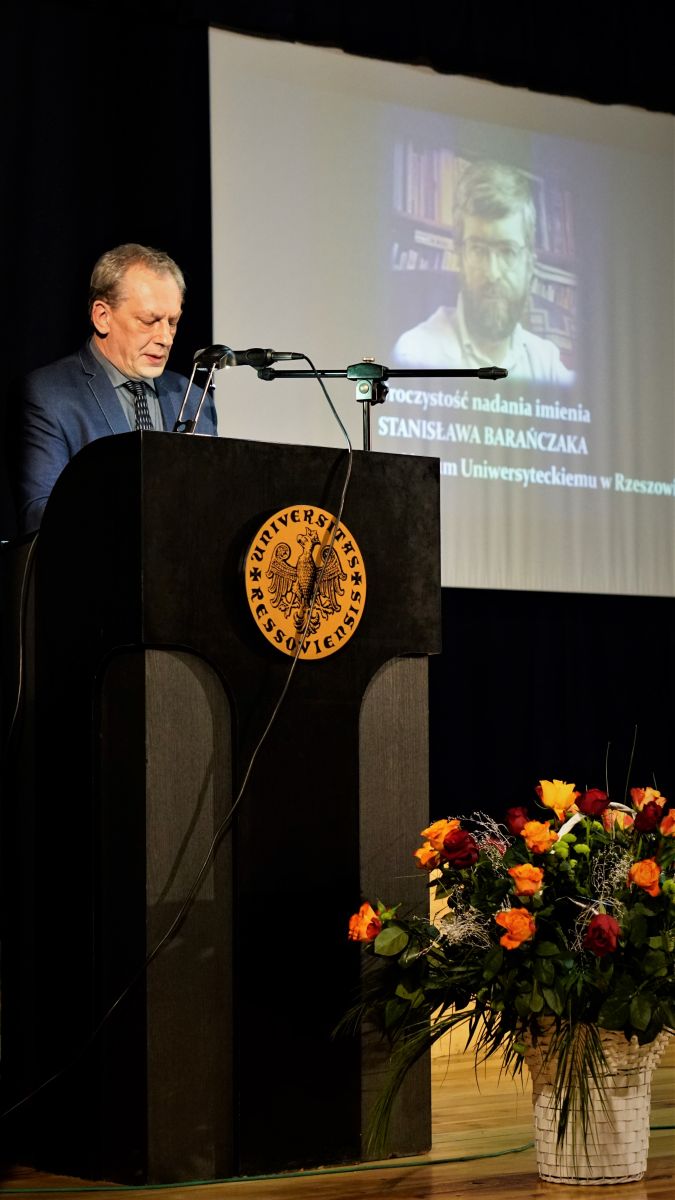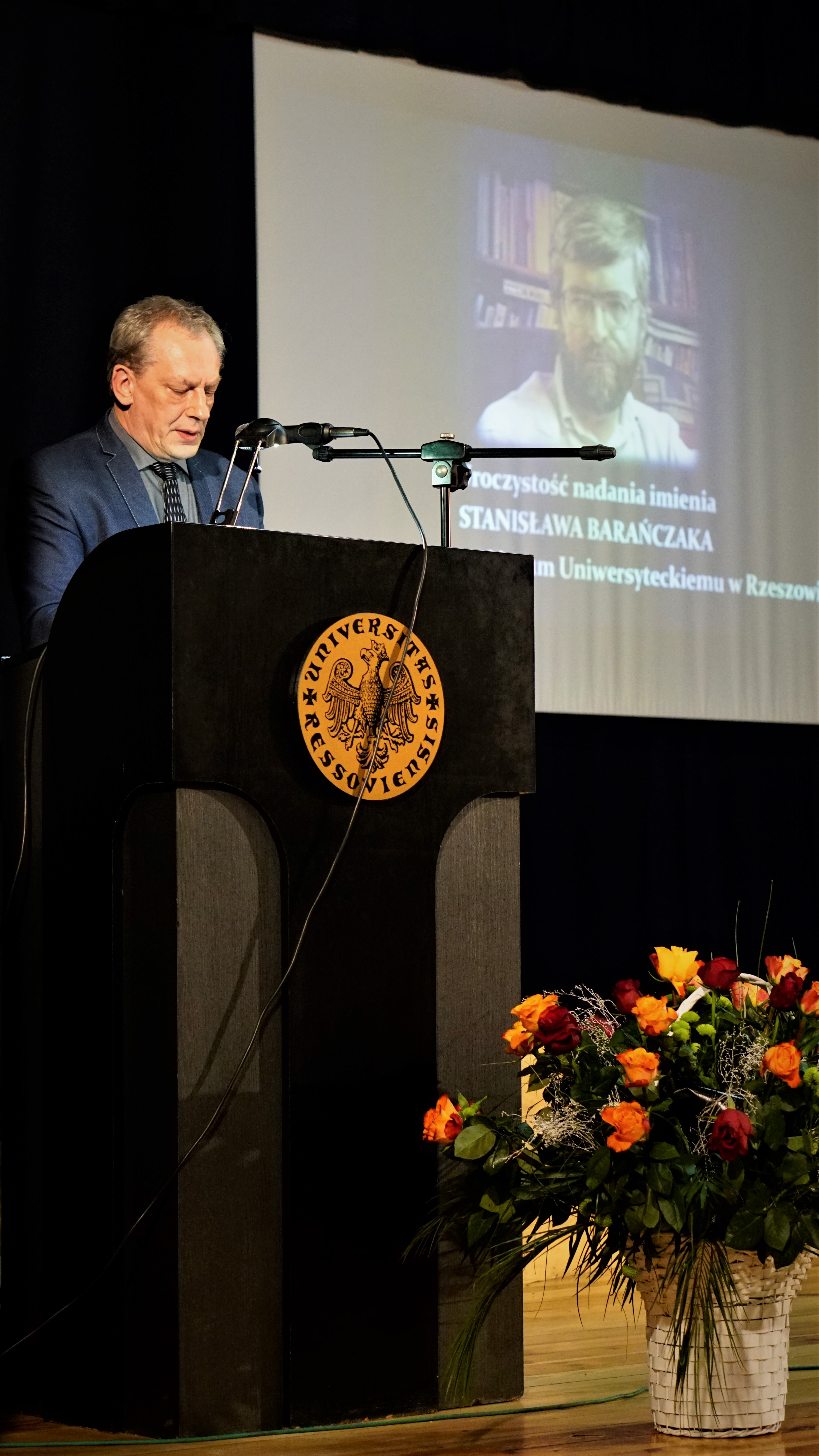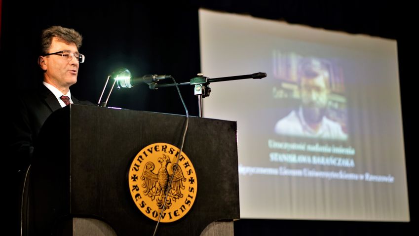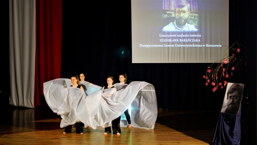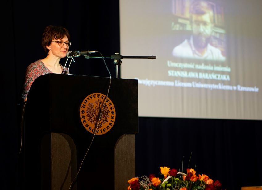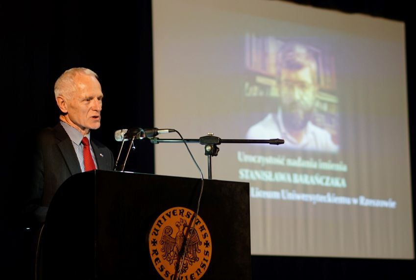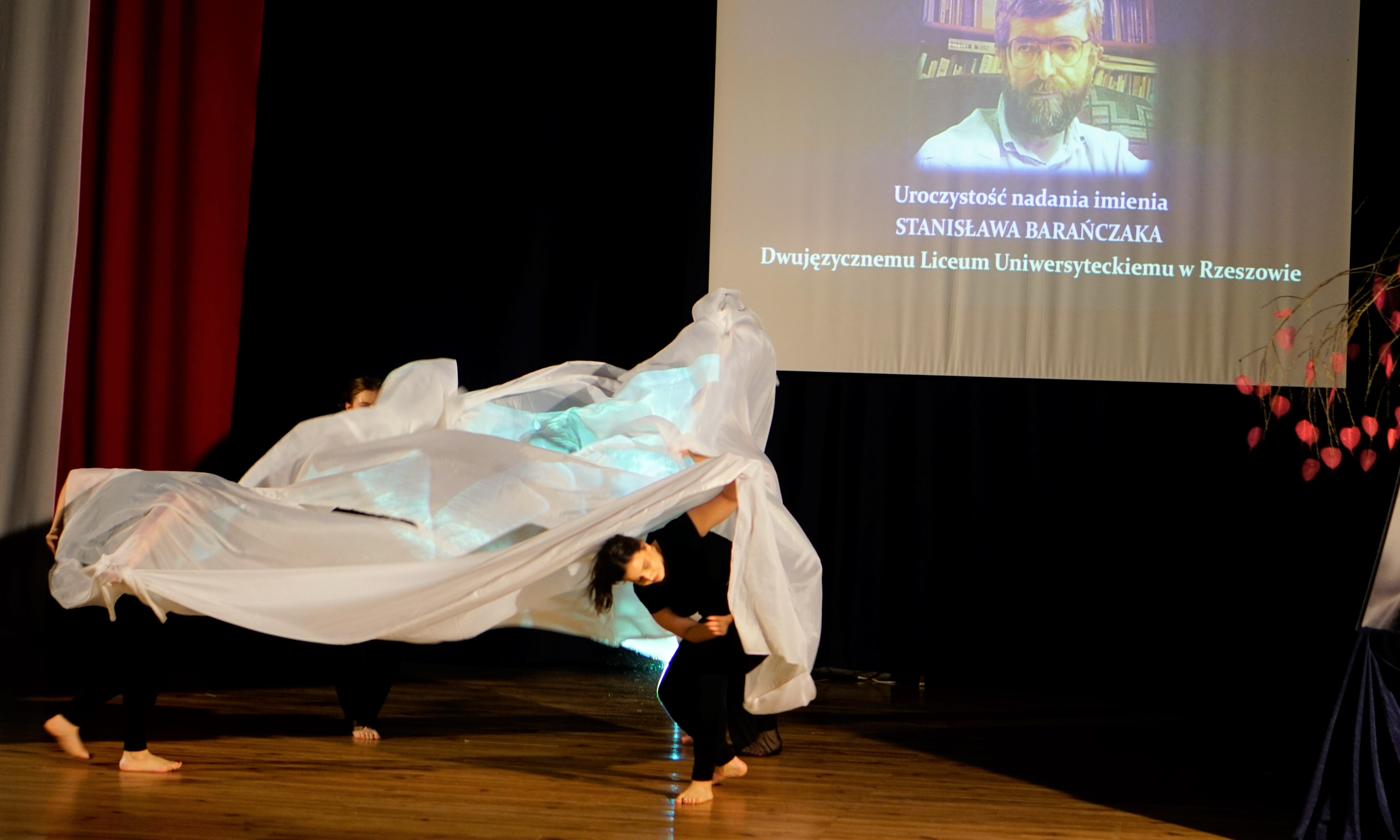 16 listopada 2017 r. odbyła się uroczystość nadania imienia Stanisława Barańczaka Dwujęzycznemu Liceum Uniwersyteckiemu. Uczestniczyli w niej: Przewodniczący Rady Miasta Rzeszowa Andrzej Dec, Wiceprzewodniczący Rady Miasta Rzeszowa Waldemar Szumny oraz radni: Jolanta Kaźmierczak, Maria Warchoł i Sławomir Gołąb. Podkarpackiego Kuratora Oświaty reprezentowała Bożena Pasieka, dyrektor Wydziału Jakości i Zarządzania Edukacją. Obecny był także Prorektor ds. Studenckich i Kształcenia Uniwersytetu Rzeszowskiego dr hab. prof. UR Wojciech Walat, a ponadto Dziekani: Wydziału Prawa i Administracji - dr hab. prof. UR Elżbieta Feret, Wydziału Filologicznego - dr hab. prof. UR Zenon Ożóg oraz Wydziału Socjologiczno-Historycznego - dr hab. prof. UR Paweł Grata. W tym ważnym wydarzeniu wzięli także udział: Dyrektor DLU dr Anna Pięta-Szawara, zastępca dyrektora DLU mgr Agnieszka Huzarska, nauczyciele, rodzice i uczniowie liceum.