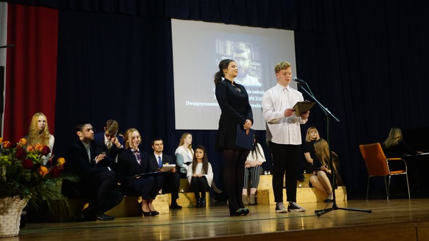 Uroczystość nadania imienia Stanisława Barańczaka Dwujęzycznemu Liceum Uniwersyteckiemu