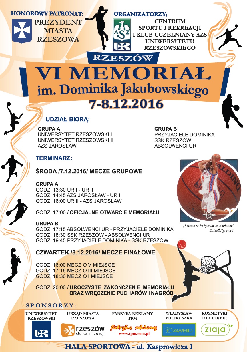 VI Memoriał im. Dominika Jakubowskiego, który odbędzie się w dniach 7-8 grudnia br., w Hali Sportowej CSiR UR przy ul. Kasprowicza 1