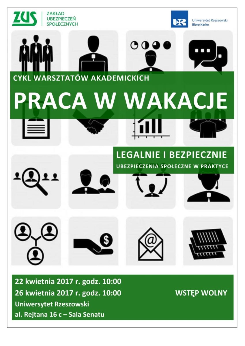 Celem warsztatów jest przekazanie wiedzy z zakresu legalnego podejmowania zatrudnienia ( zwłaszcza w okresie wakacji )oraz wynikającym z tego faktu podleganiu ubezpieczeniom społecznym. Ponadto chcielibyśmy osobom planującym podjęcie zatrudnienia zwrócić uwagę na kwestie wypadków przy pracy oraz świadczeń przysługujących z tego tytułu poszkodowanym