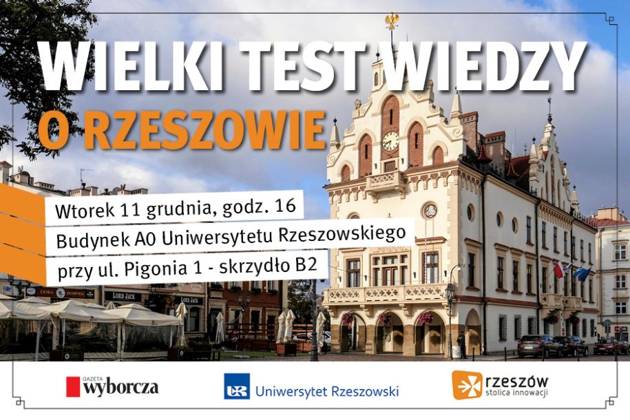 11 grudnia na Uniwersytecie Rzeszowskim przeprowadzony zostanie pierwszy Wielki Test Wiedzy o Rzeszowie. Dla chętnych przygotowaliśmy 144 miejsca i wysokie nagrody. Za pierwsze miejsce – 4 tys. zł, drugie – 2,5 tys. zł, a trzecie – 1,5 tys. zł.