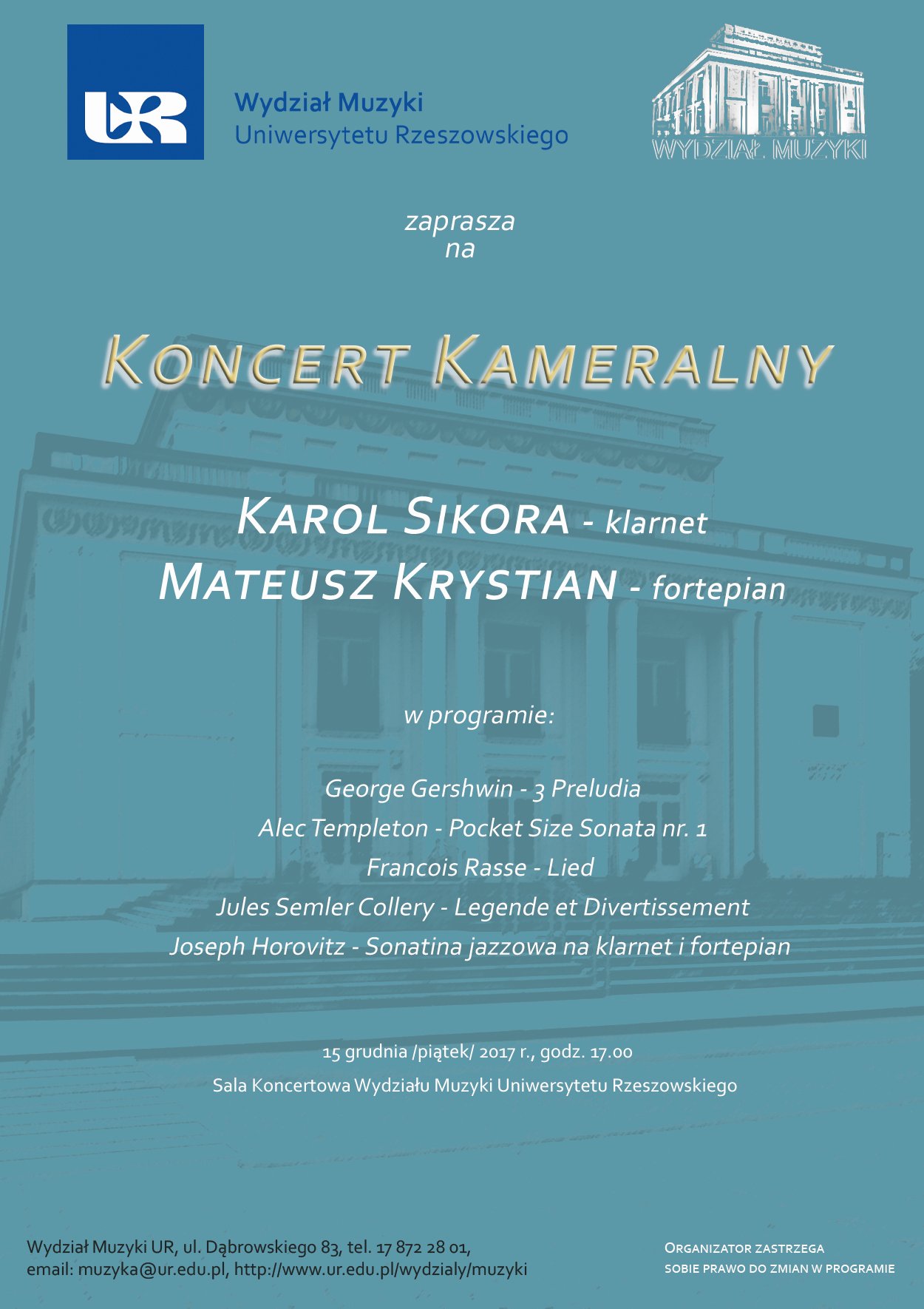 Wydział Muzyki UR zaprasza na koncert