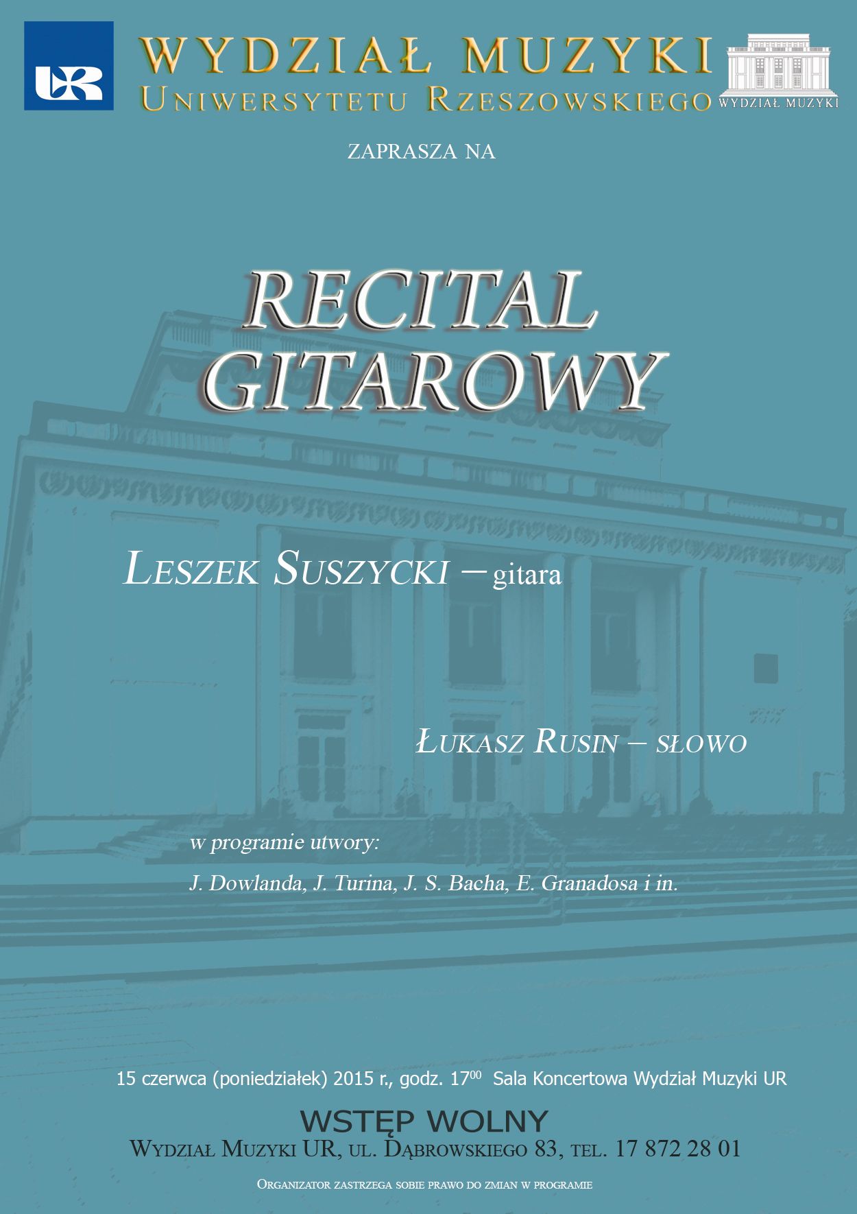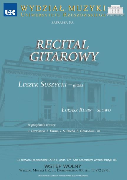 Wydział Muzyki UR zaprasza na Recital Gitarowy.