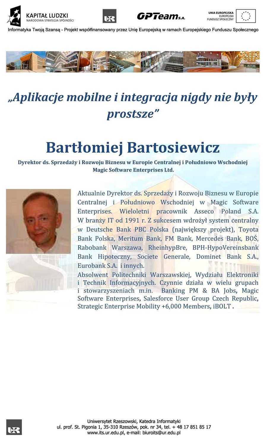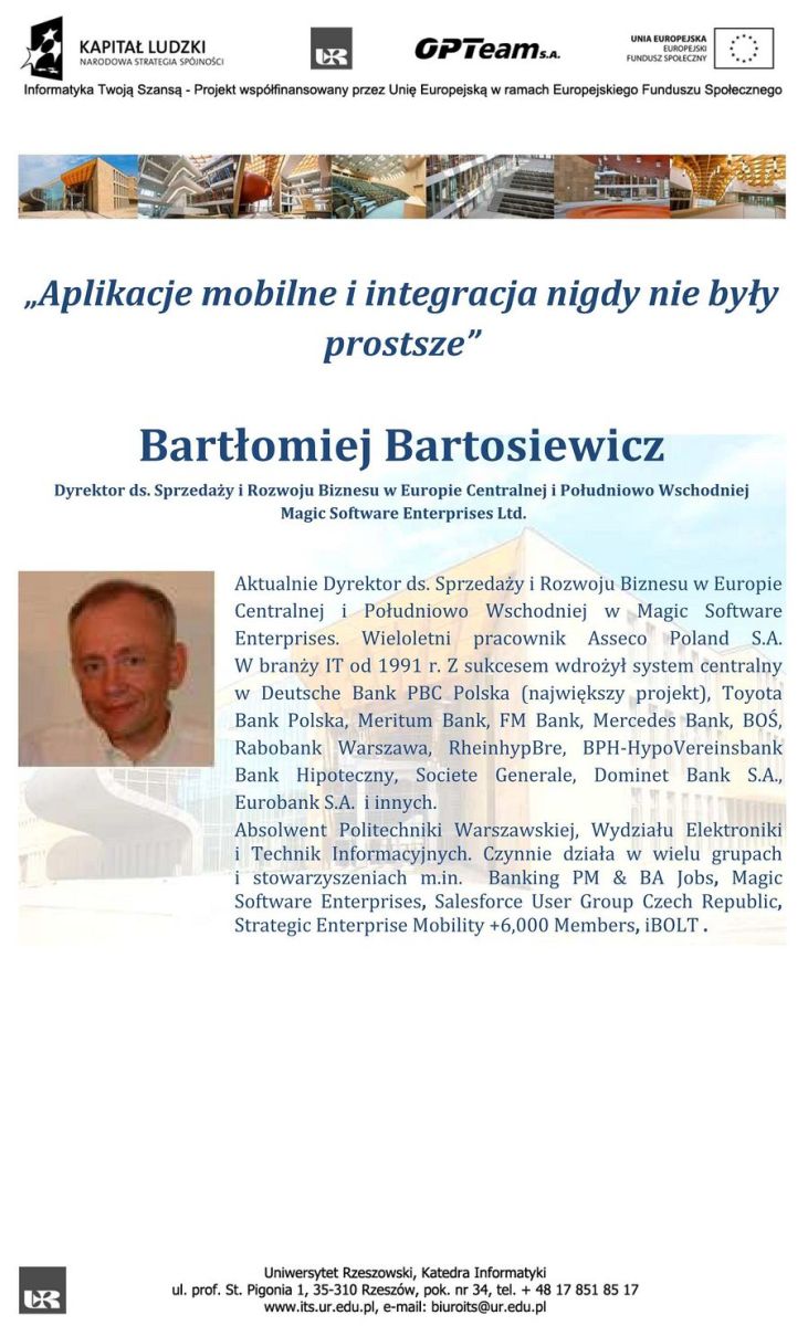 10.00 - „Aplikacje mobilne i integracja nigdy nie były prostsze”/ Bartłomiej Bartosiewicz/ Magic Software Enterprises Ltd.