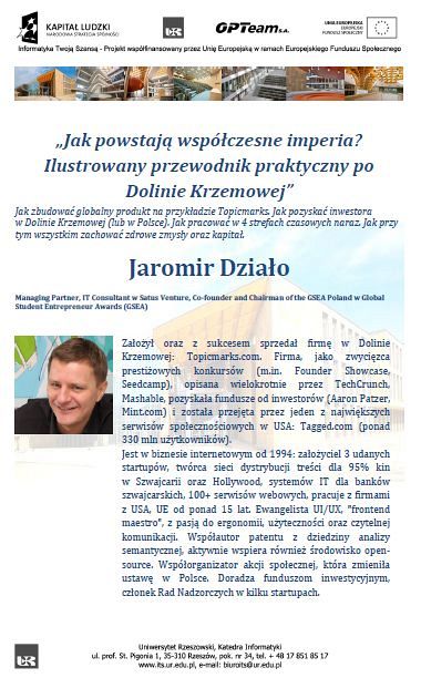 11.00 - „Jak powstają współczesne imperia? Ilustrowany przewodnik praktyczny po Dolinie Krzemowej”/ Jaromir Działo/ Satus Venture