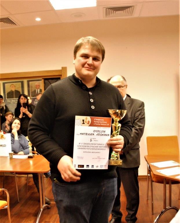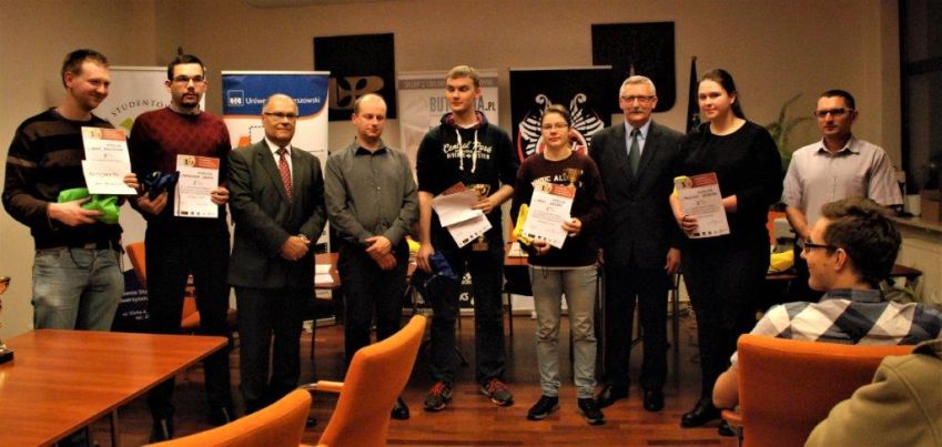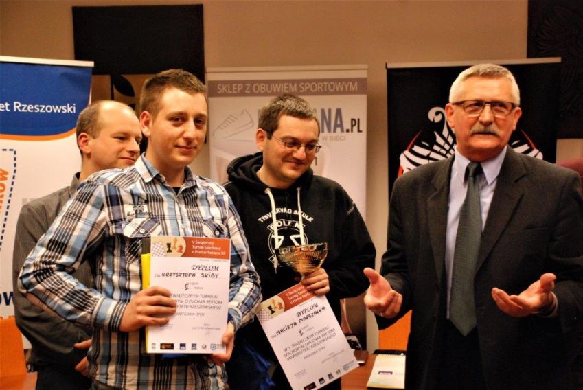 Szachy & Brydż sportowy w Uniwersytecie Rzeszowskim Zwycięzcy: Szkoły Podstawowe - Mateusz Kusiak (4,5 pkt.) RzKSz Rzeszów. Gimnazja - Wojciech Drygaś (3,5) Gimnazjum w Wiśniowej. Szkoły Ponadgimnazjalne - Adrian Miąsik (5,0) RzKSz Rzeszów. Absolwentki - Małgorzata Gubernat (3,5) SS-T Stowarzyszenie Sportowo-Turystyczne Lubcza. Absolwenci - Mateusz Leśniak (4,5). Pracownicy - Jan Pisuliński (5,0) UR Wydział Socjologiczno-Historyczny. Studentki - Anna Zegar (4,0) Ekonomia, Paulina Leśniak (2,0) Pielęgniarstwo, Regina Derda (2,0) Fil.Angielska. Studenci - Damian Lewtak (7,0) Wydz.Medyczny Kierunek-Lekarski, Mateusz Lach (5,5) Kulturoznawstwo, Jan Augustyn (4,0) Praca Socjalna. OPEN - Maciej Marszałek (6,0) MKS Sandecja Nowy Sącz, Krzysztof Skiba (5,5)TSz "SKOCZEK" Sędziszów Młp. Politechnika Rzeszowska, Adam Leja (5,0).