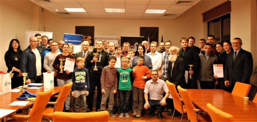 Wczoraj (15/12/2016) ok. godz. 22:00 zakończył się V Świąteczny Turniej Szachowy o Puchar JM Rektora UR. 49 zawodników rywalizowało w kilku kategoriach. Niezależnie od rankingów i kategorii wszyscy uczestnicy wykazali się ogromnym zaangażowaniem i niebanalnymi umiejętnościami. Na zakończenie prof. Sylwester Czopek osobiście wręczył puchary zwycięzcom poszczególnych kategorii.