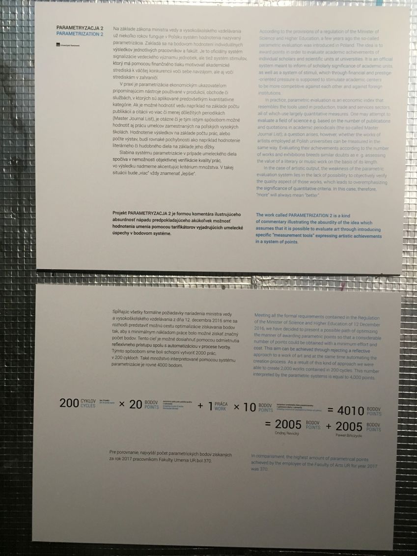Pozostała część grafik została upubliczniona w Muzeum Sztuki Nowoczesnej Andy'ego Warhola w Medzilaborcach na Słowacji, na wystawie PARAMETRYZACJA 2. Mimo że wówczas pokazaliśmy taką samą ilość prac co w Gdańsku, przez fakt że spełniliśmy kryterium wystawy zagranicznej, udał się nam tym razem zebrać 4000 punktów.