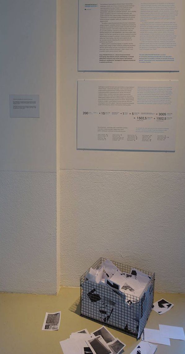 W przestrzeni galerii pokazanych zostało 4000 grafik, które jednak ze względu na fakt, że były już wcześniej upublicznione, oraz że są prezentowane w obrębie jednostki macierzystej, nie mogą być wykazane w rocznym sprawozdaniu z realizacji zadania badawczego. Zatem nominalna wartość prac prezentowanych na wystawie PARAMETRYZACJA 0, to z punktu widzenia systemu parametrycznego - 0 punktów.
