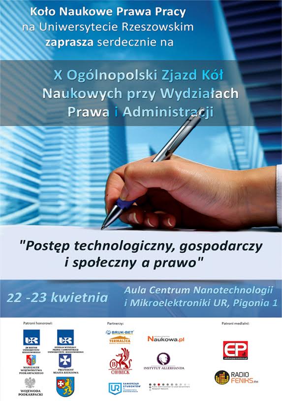 Zapraszamy na Jubileuszowy X Ogólnopolski Zjazd Kół Naukowych przy Wydziałach Prawa i Administracji, który odbędzie się w dniach 22-23 kwietnia 2015 r. na Uniwersytecie Rzeszowskim.