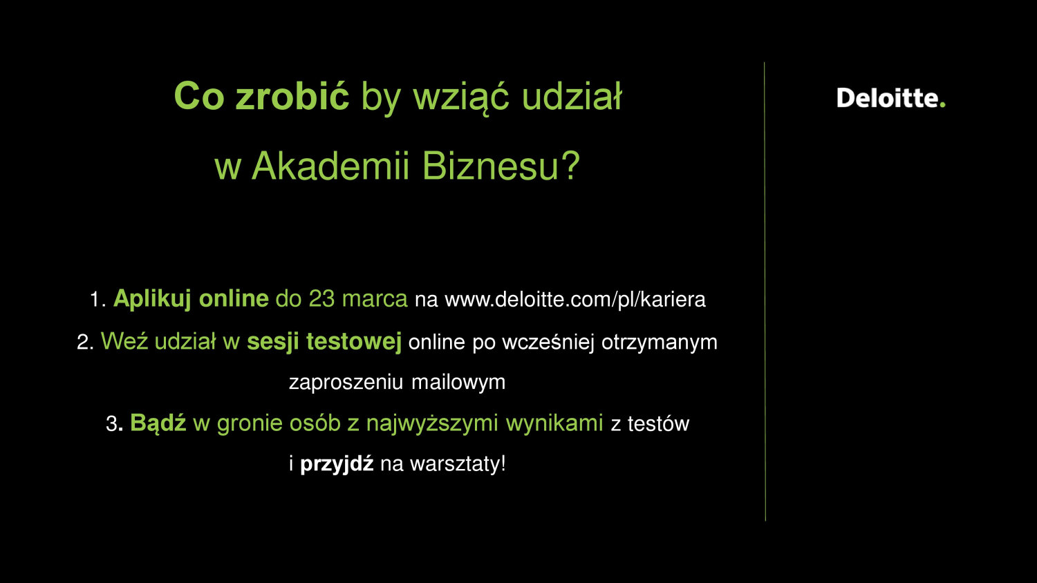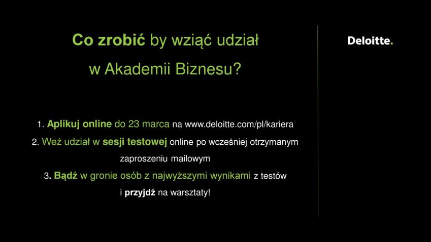 1. Aplikuj online do 23 marca na www.deloitte.com/pl/kariera