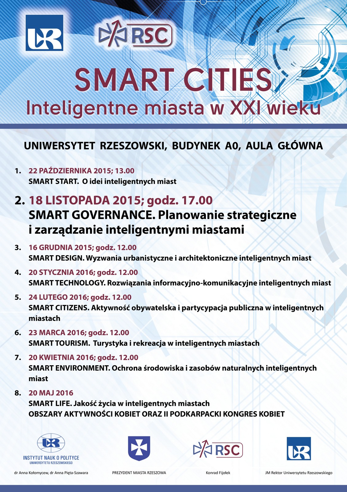 Tym razem spotkanie będzie dotyczyło Smart Governance - planowania strategicznego i zarządzania inteligentnymi miastami. Odbędzie się ono już 18 listopada o godz. 17.00, w budynku A0 UR (Kampus Główny Uniwersytetu Rzeszowskiego przy ul. Rejtana).