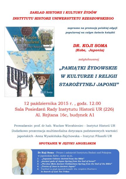 Zapraszamy na promocję polskiej edycji książki DR. KOJI SOMA (Kobe, Japonia) „PAMIĄTKI ŻYDOWSKIE W KULTURZE I RELIGII STAROŻYTNEJ JAPONII”.