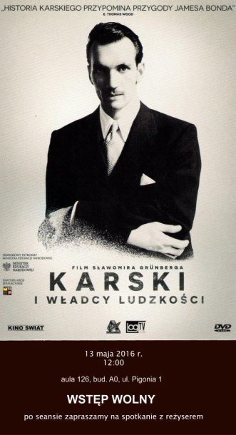 Zapraszamy na seans "Karski i władcy ludzkości" — 13 maja 2016r.