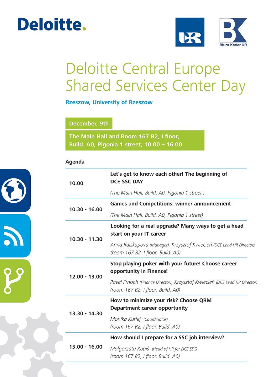będzie dostępne stoisko firmowe Deloitte obfitujące w liczne niespodzianki m.in; fotobudka gdzie będzie można zrobić sobie zdjęcia nie tylko z pracownikami Biura Karier UR.